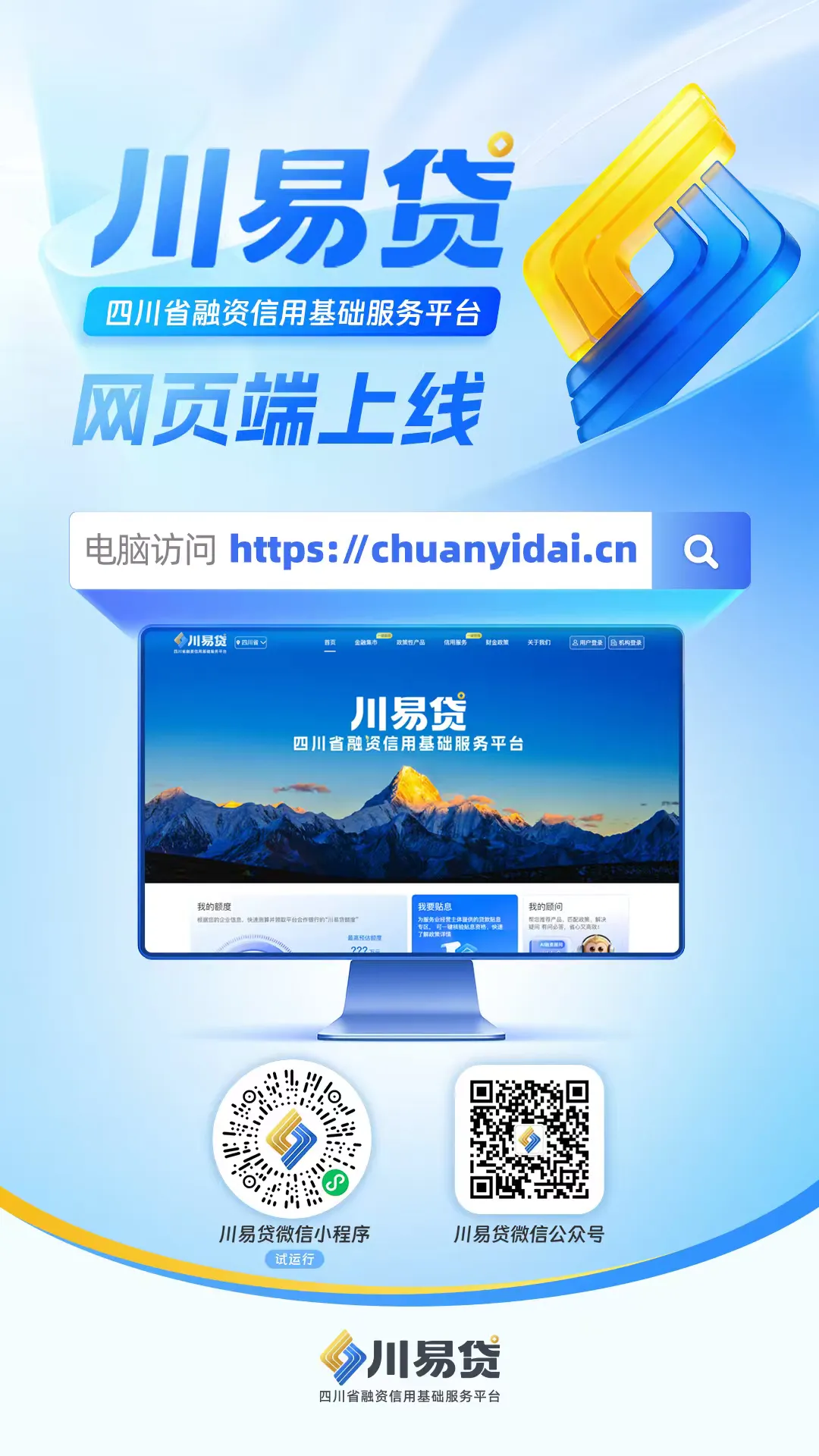 为持续优化营商环境,通过“数据+科技”构建金融服务新范式,进一步缓解企业“融资难、融资慢、融资贵”问题,四川省融资信用基础服务平台——“川易贷”乐山子站点已上线运营,企业可依托该平台,打破地域限制,直接享受省级平台带来的融资便利,有效降低融资门槛和成本。“川易贷”是按照四川省委、省政府安排部署,由省委金融办主管,在多个省级部门及金融监管部门指导下建设的全省统一融资信用基础服务平台。作为政府部门向金融机构集中提供公共信用信息服务的“唯一出口”,该平台依托省社会信用信息平台,共享税务、企业工商、社保、公积金、司法等信用数据资源。通过乐山子站点接入,平台推动金融机构以“数据增信”重塑信贷模式,打破“重资产抵押”的传统融资壁垒,从而让企业能够更容易地获得金融“活水”。统一化入口。乐山的用户可通过子站点,直接享受“川易贷”省级平台的全面服务。一次注册,即可通览并申请由全省多家金融机构提供的信贷产品,融资选择范围从本地扩展至全省。智能化融资。平台集成的“一键授信”“一键融资”等功能,将极大简化申请流程,提升融资响应速度和成功率,并通过“财金政策”“资讯速递”等板块推送惠企信息,助力企业便捷获取本地优质金融资源。数字化增信。在依法合规和安全保障的前提下,平台通过信用信息共享机制,助力企业将自身信用转化为信贷,增强其融资增信能力,从而有望获得更低利率的贷款,切实降低融资成本。目前,乐山子站点已入驻金融机构32家,上架各类信贷产品174款,初步构建起覆盖全市、功能互补、线上线下协同的融资服务网络。推动川易贷乐山子站点有效运用,致力于构建更加强大、便捷、高效的金融生态体系,推进金融资源配置向“新”向“实”,以金融“活水”精准灌溉夹江高质量发展沃土。来源:夹江县财政局