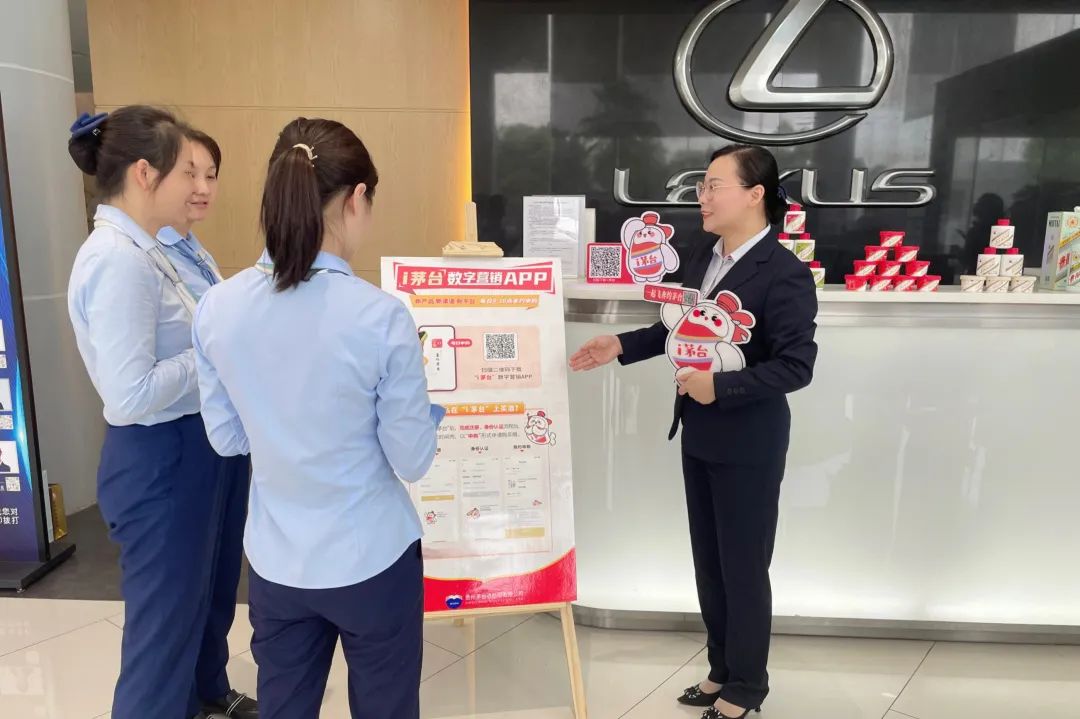 晴日暖风生麦气,绿阴幽草胜花时。步入初夏,阳光明媚,为坚定不移走好“五线”发展道路,积极践行“五合营销法”,持续做好i茅台及巽风数字世界APP宣传推广工作,增加平台的传播度与知名度。2023年5月16日,赣州瑞联酒业有限公司走进赣州广虹雷克萨斯汽车销售服务有限公司开展i茅台及巽风数字世界APP线下推广活动,进一步增强客户粘性,培育更多茅粉。
