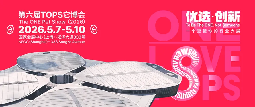 第六届TOPS它博会,将于2026年5月7-10日在国家会展中心(上海)举行。作为“中国宠业年度优选平台”,它博会迈入第二个五年,以“PAWSibility茸力”为主题,秉持“优选、精准、高效”理念自我革新。致力于成为年轻、创新的行业引擎,打造观众爱逛的展会,让每一展区高效链接,每一新品触发惊喜,共促灵感与商机绽放。