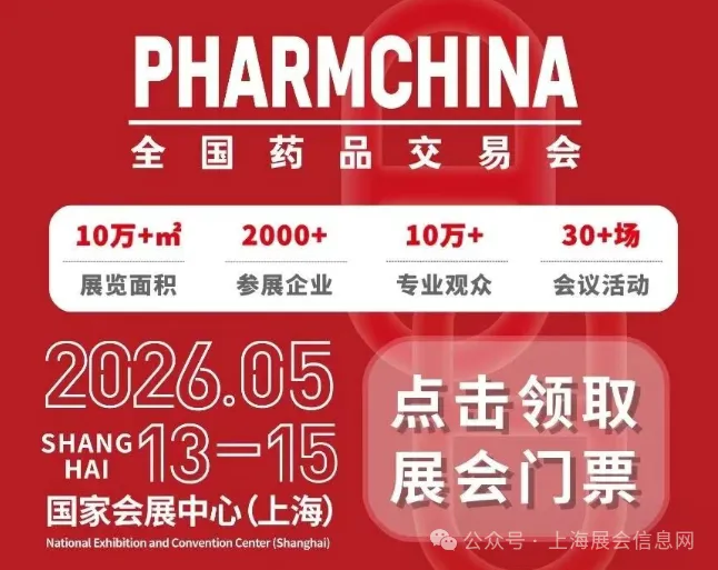第92届全国药品交易会(PHARMCHINA)将于2026年5月13-15日在国家会展中心(上海)举办!同期举办:第94届中国国际医药原料药/中间体/包装/设备交易会(API China)、2026中国国际健康营养博览会(NHNE)。