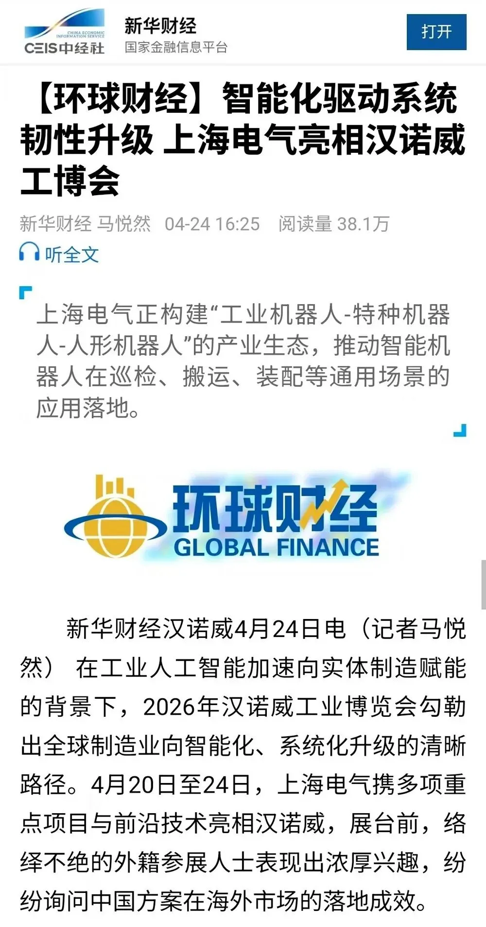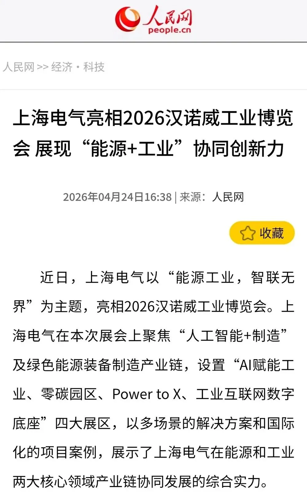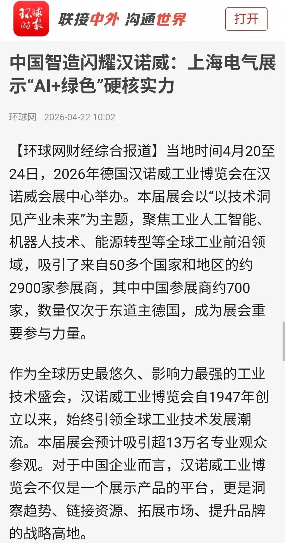 媒体聚焦|亮相2026汉诺威工业展,上海电气「AI+绿色」方案获多家央媒关注