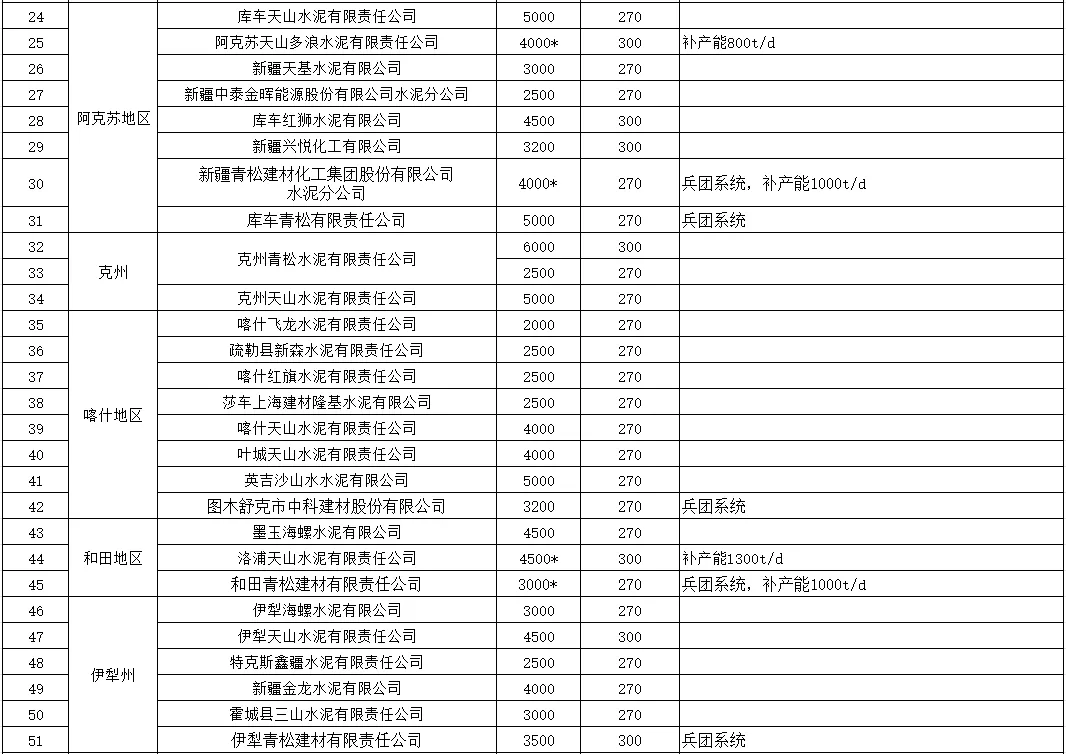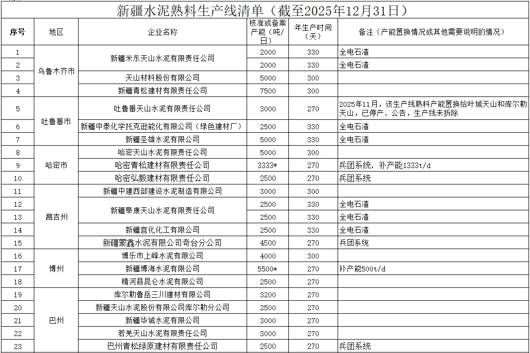 近日,新疆维吾尔自治区工业和信息化厅联合新疆生产建设兵团工业和信息化局,正式发布了新疆水泥熟料生产线清单。