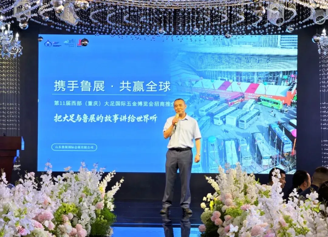 山东鲁展国际会展有限公司相关负责人现场作招商推介,并表示将发挥专业优势、整合客商资源,提升展会专业化、国际化水平,助力大足五金对接全球市场、实现合作共赢。