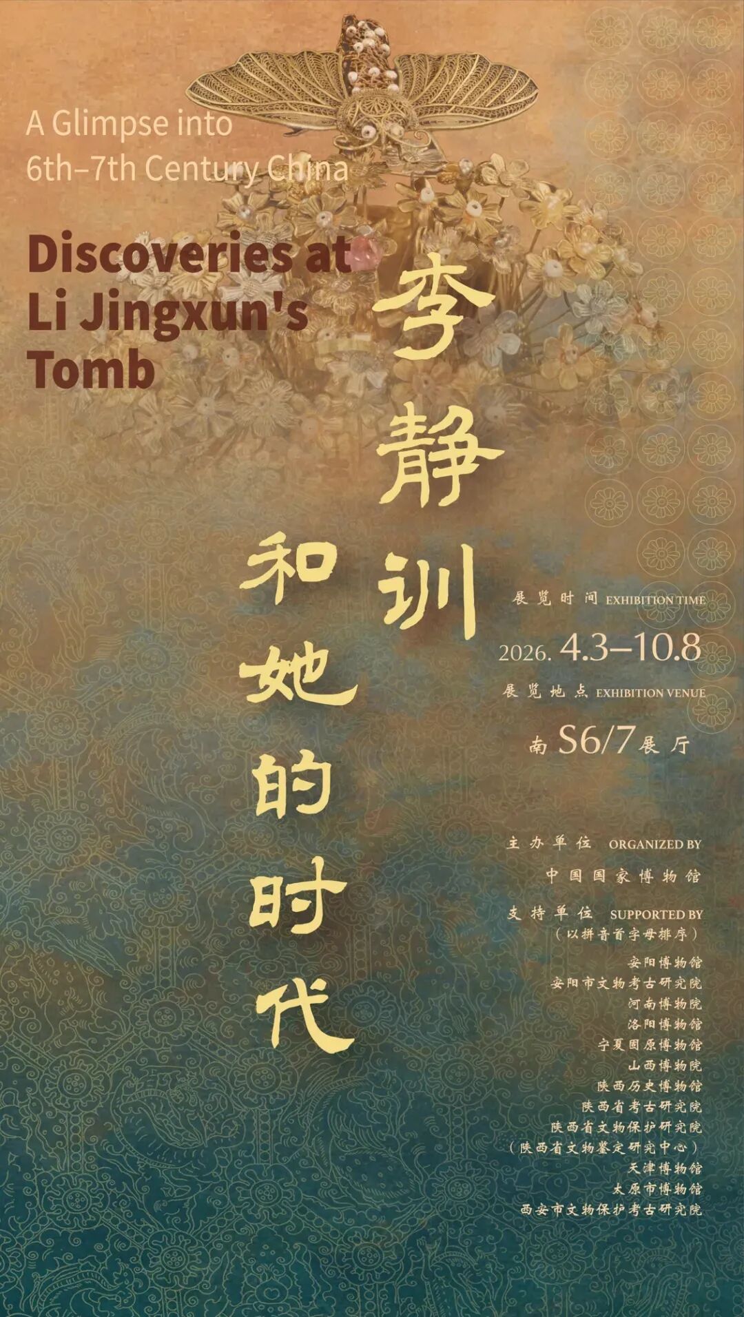 李静训和她的时代 | 中国国家博物馆南6、南7展厅 | 2026.4.3–10.8 | 9:00–17:00(16:00停止入馆,周一闭馆) | 身份证件预约 | 免费需预约 | 地铁1号线天安门东站C口 |