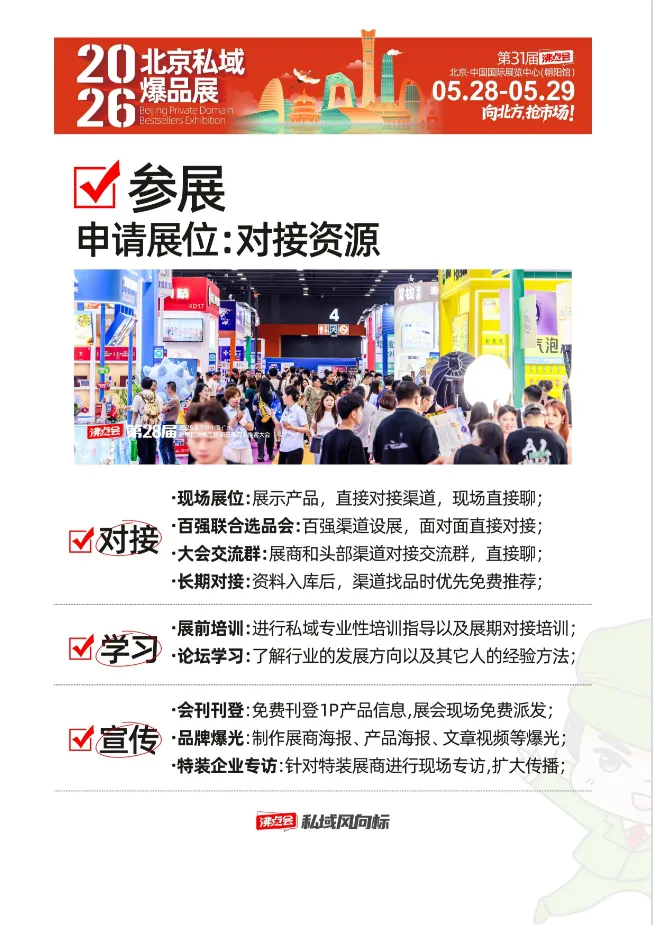 品牌方和源头工厂——如果你的产品在南方已经跑起来了,想打开北方市场,来一趟能把北方全域的头部渠道见一遍。如果你还没入场,第一天的论坛和三天的展区,能让你快速建立起对私域渠道的整体认知。