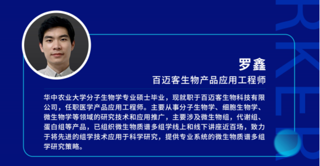 展会期间我们邀请了百迈客生物产品应用工程师罗鑫就关于“肠道菌群研究技术与多组学解决方案”主题进行现场技术宣讲。如果您有对相关研究技术感兴趣,欢迎您观看本场讲座。