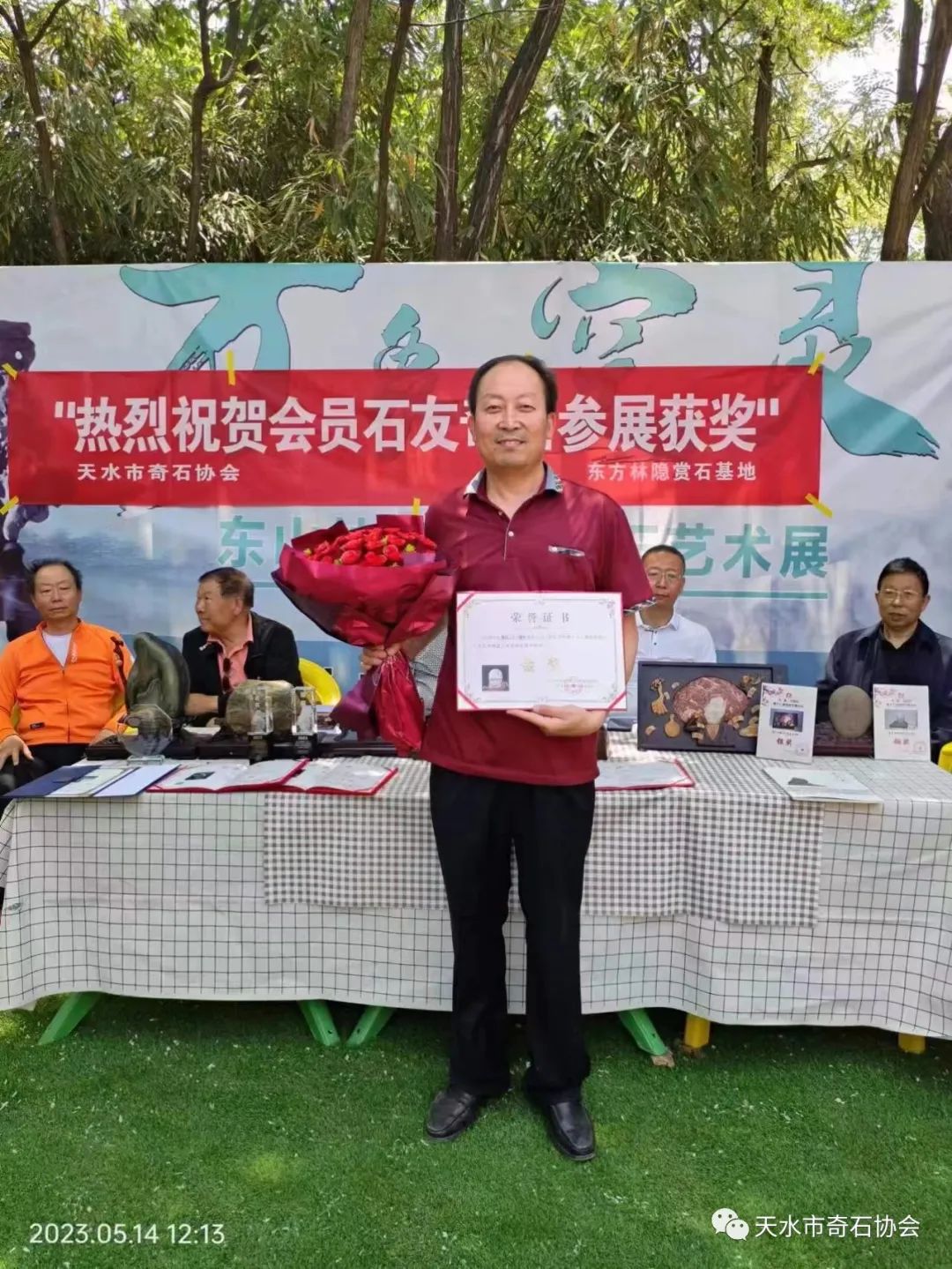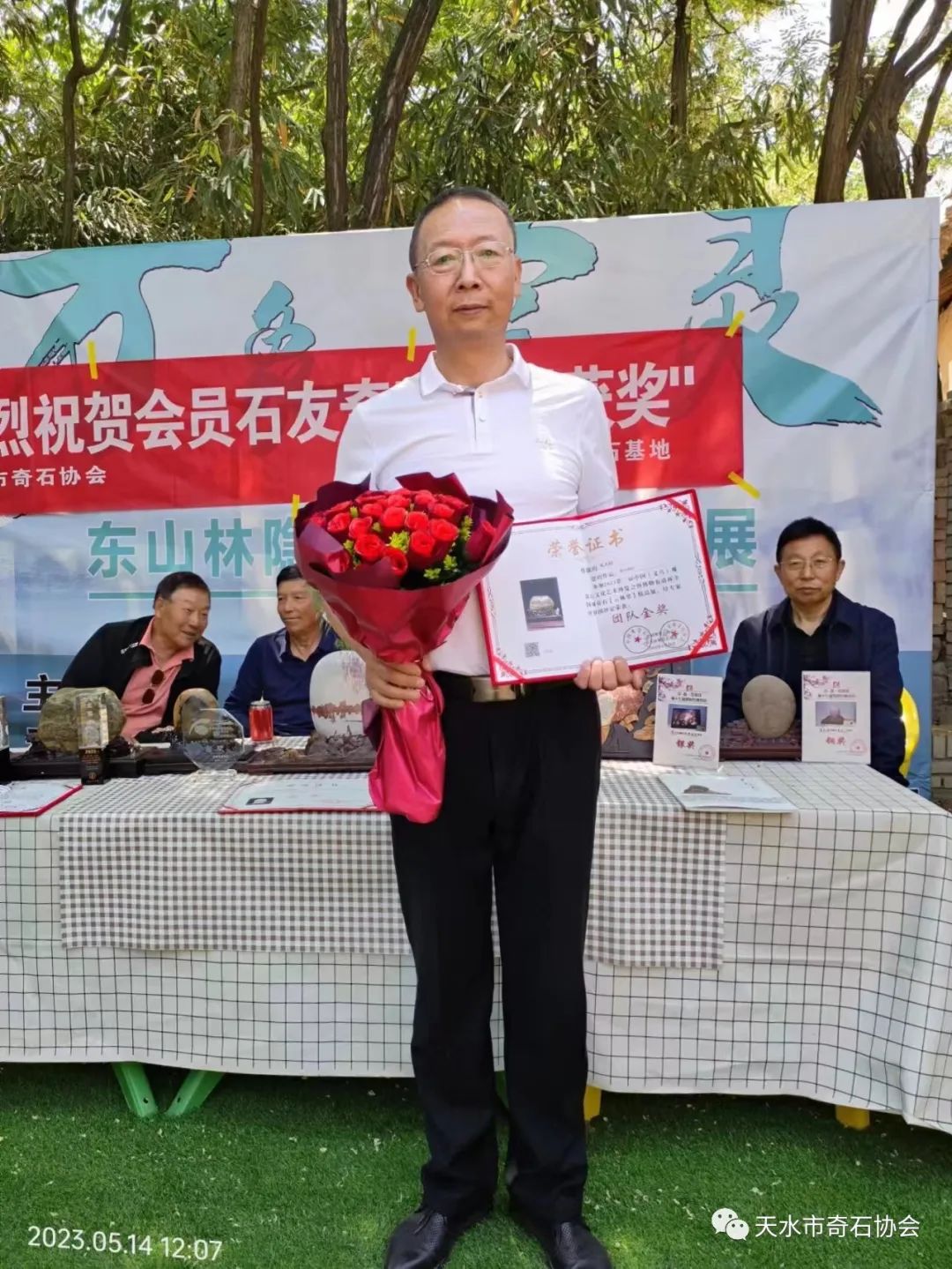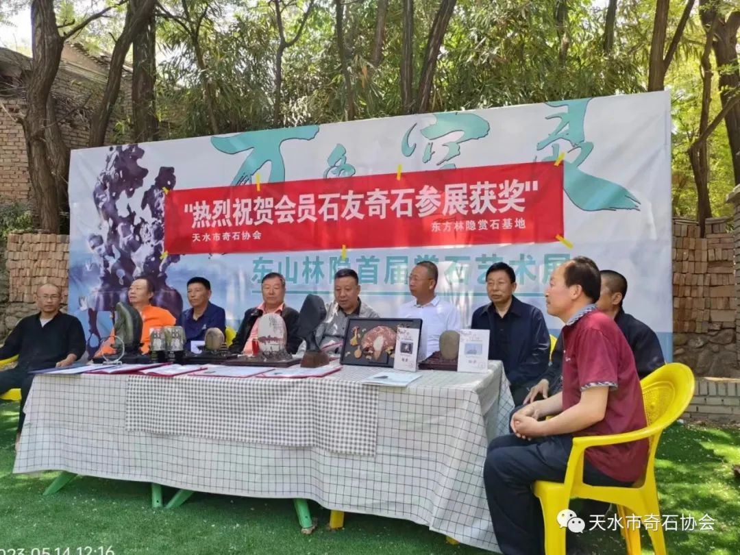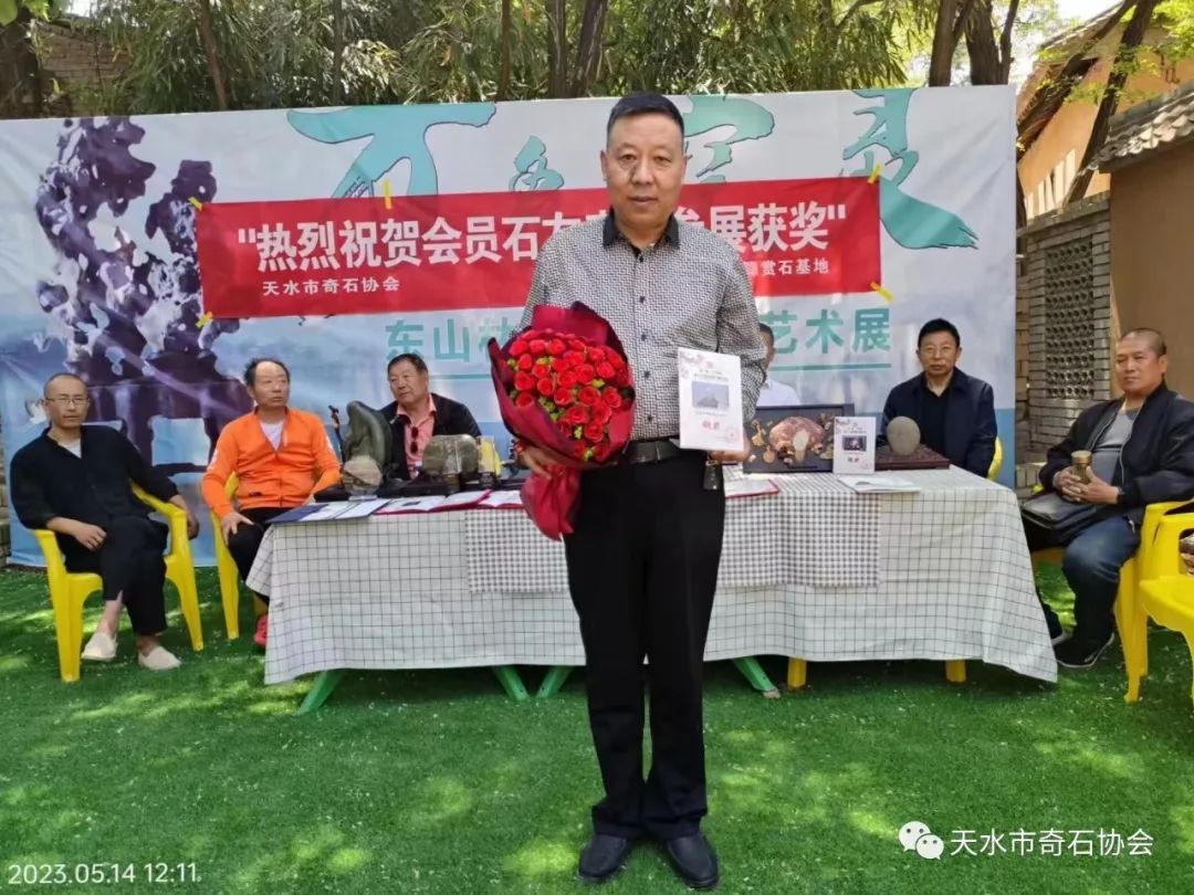 5月14日,天水市奇石协会在东山林隐赏石基地,热烈祝贺协会会员在今年国石展会中获 金 银 铜奖!