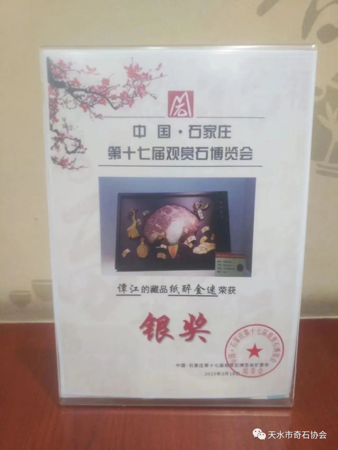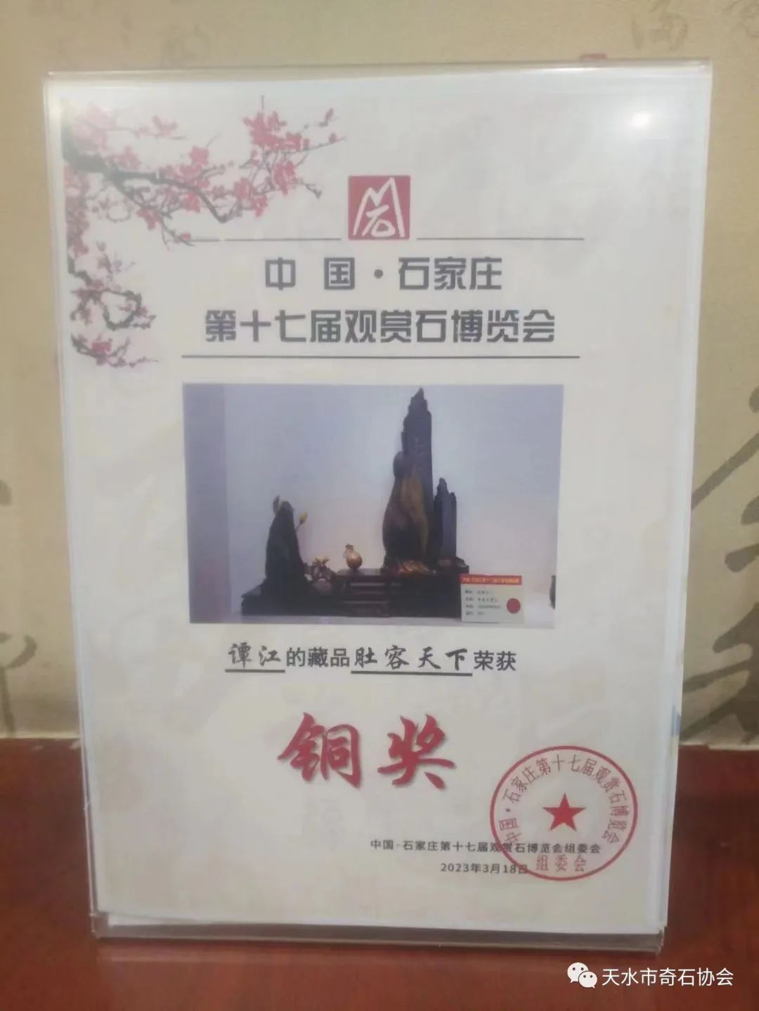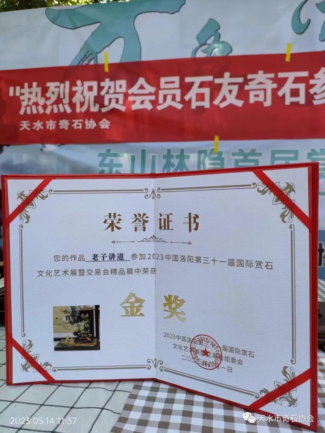 5月14日,天水市奇石协会在东山林隐赏石基地,热烈祝贺协会会员在今年国石展会中获 金 银 铜奖!