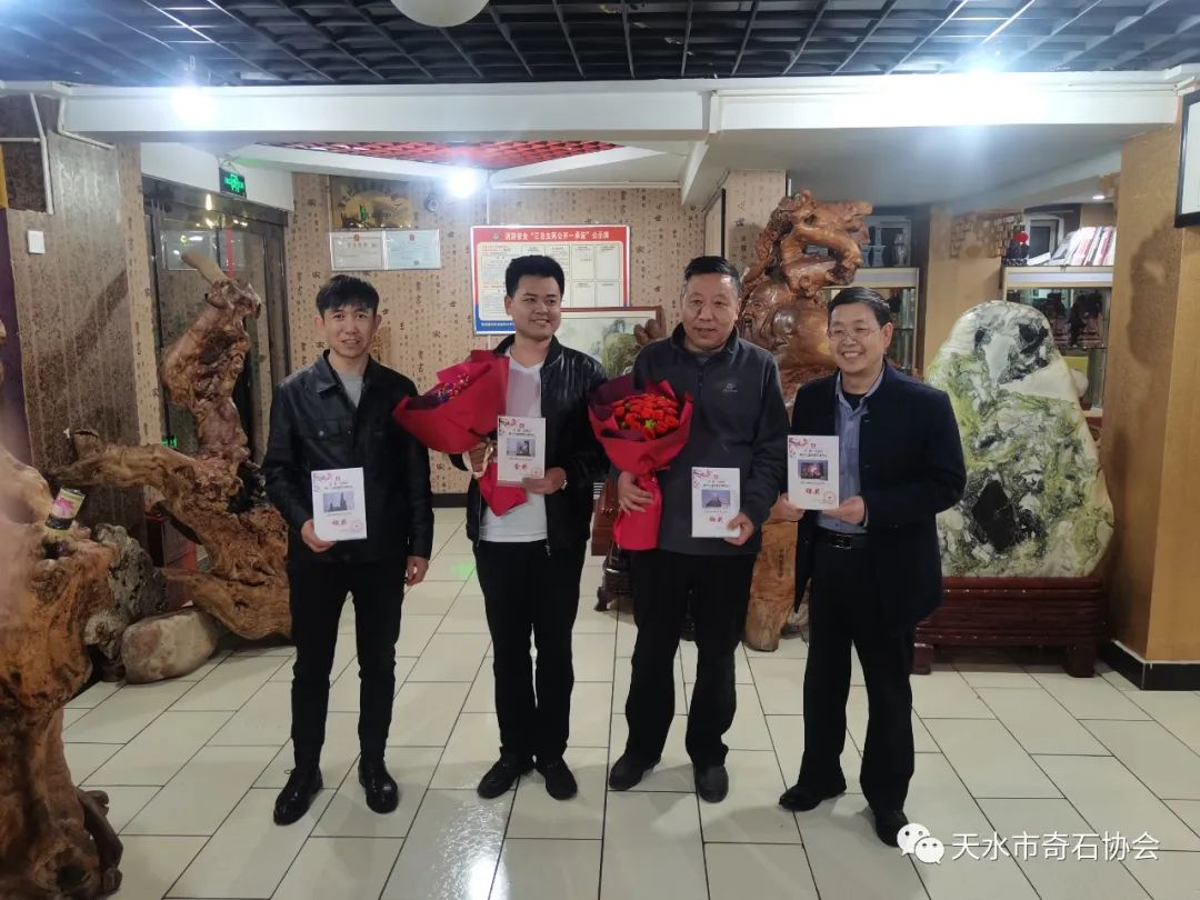 参加今天祝贺议式的有:天水市奇石协会名誉副会长王福映,天水市奇石协会常务副会长薛頁祥,副会长巨正德,常鹏图,武山县奇石协会会长唐又先,名誉副会长程锡乾,理事会理事宋伟等会员石友。