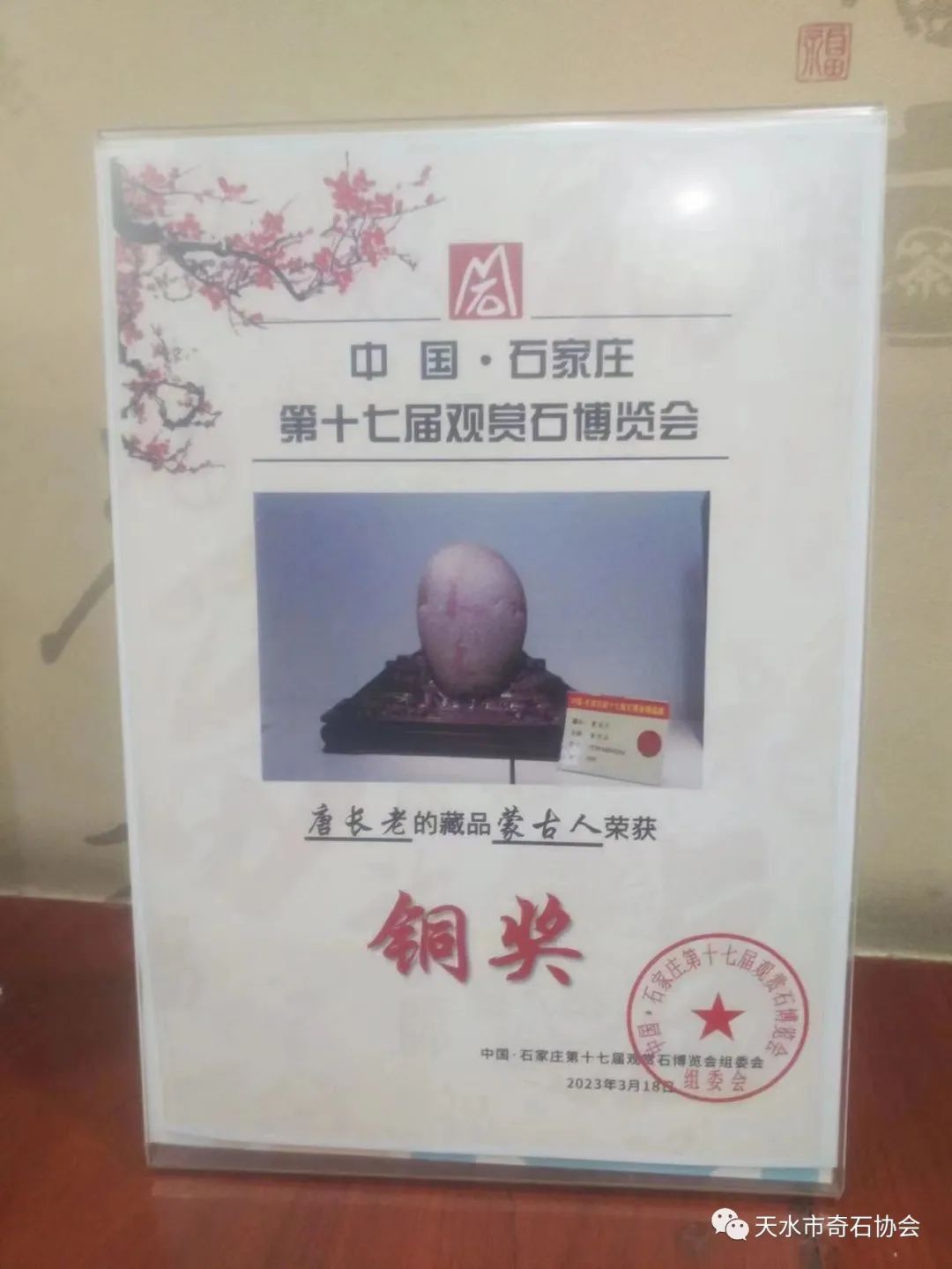 天水市奇石协会武山协会会长唐友先先生选送的《埃及艳后》获银奖。