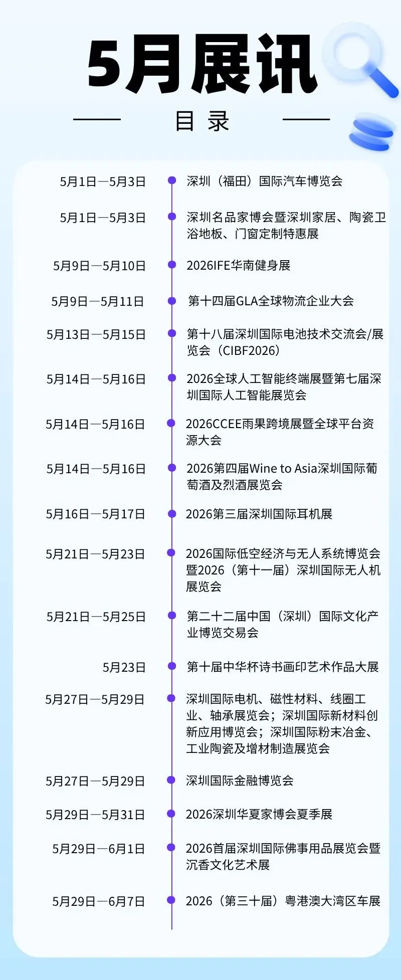 深圳国际电机、磁性材料、线圈工业、轴承展览会;深圳国际新材料创新应用博览会;深圳国际粉末冶金、工业陶瓷及增材制造展览会
