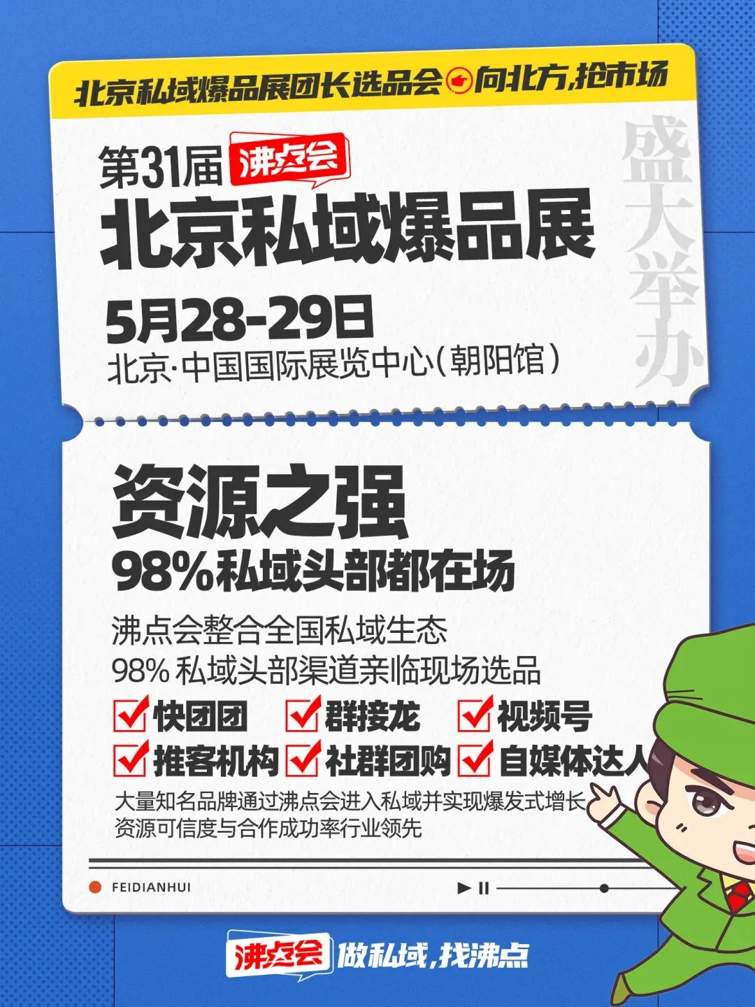 5月28日-29日,第31届沸点会·全国私域团长大会暨私域新渠道爆品展,将在北京·中国国际展览中心(朝阳馆)正式开启。