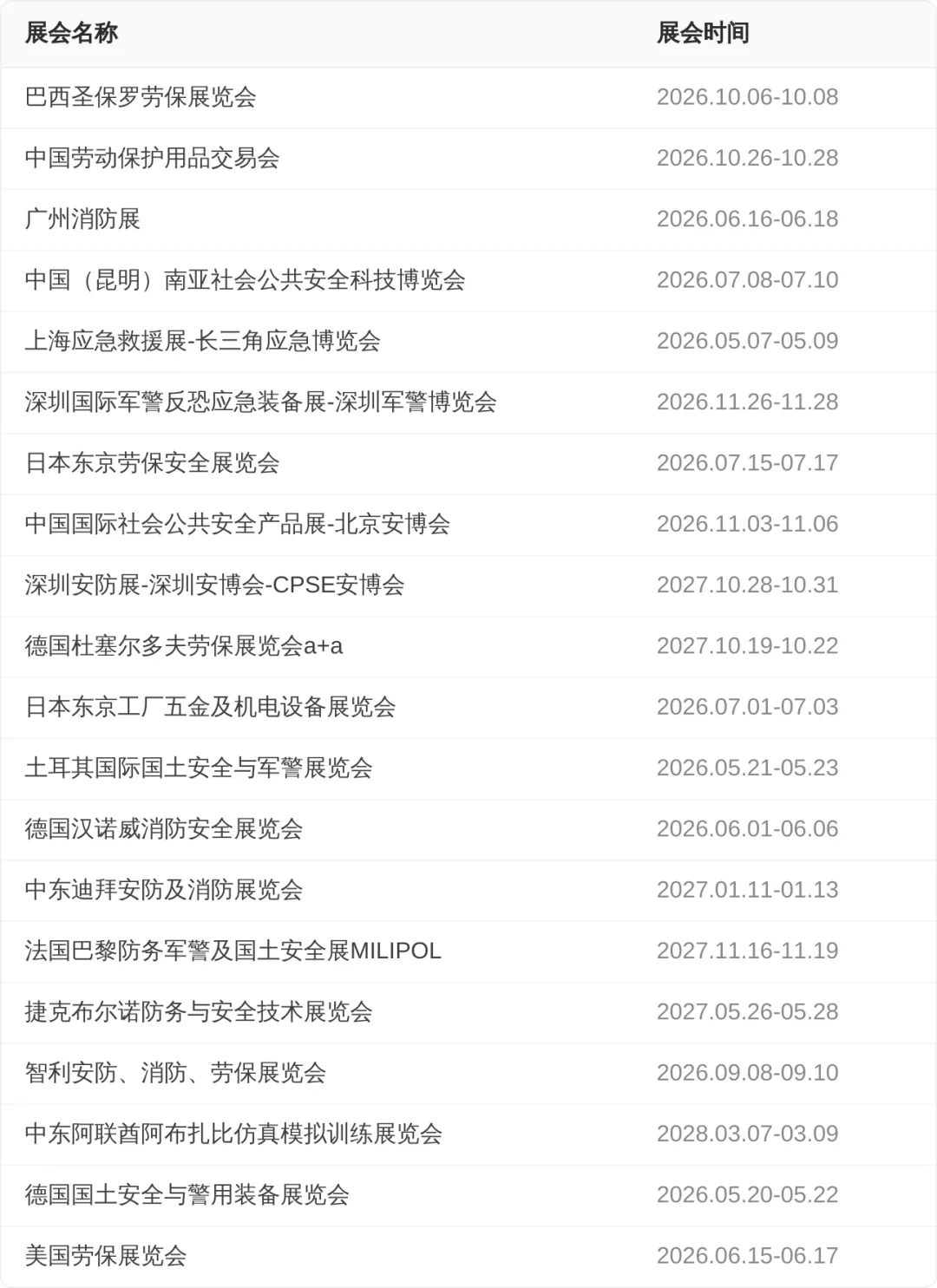 【劳保展会排期】