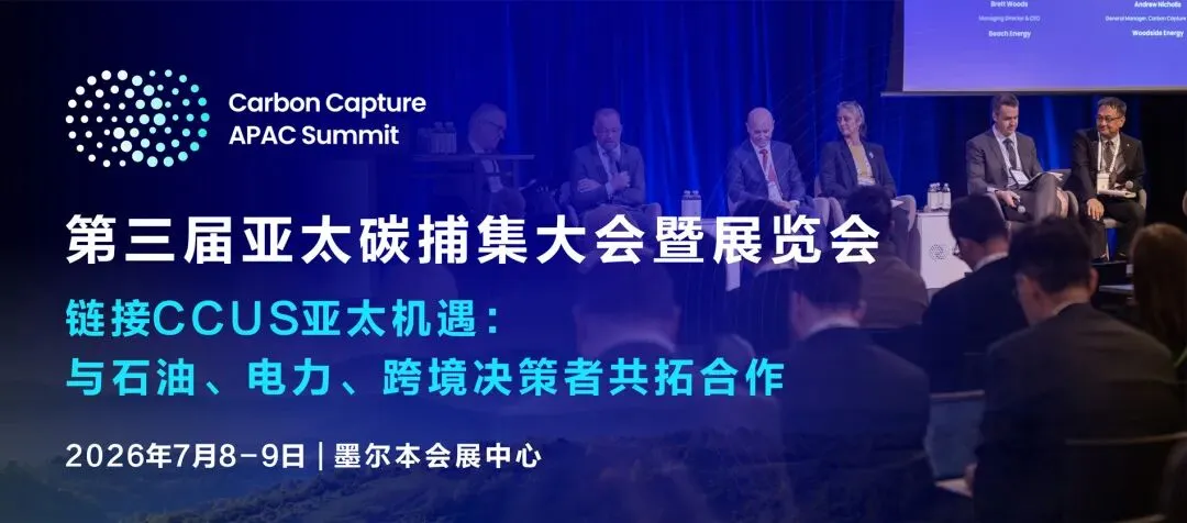 第三届亚太碳捕集大会暨展览会将于2026年7月8-9日在澳大利亚墨尔本会展中心举办。作为亚太地区规模最大的碳捕集领域盛会,本届大会将汇聚来自10余个国家的政府及CCUS价值链上下游的700多名参与者,其中80%以上为核心决策层。
