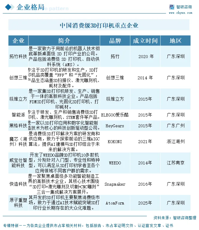 相关报告:智研咨询发布的《中国消费级3D打印机行业市场专项调研及投资前景规划报告》