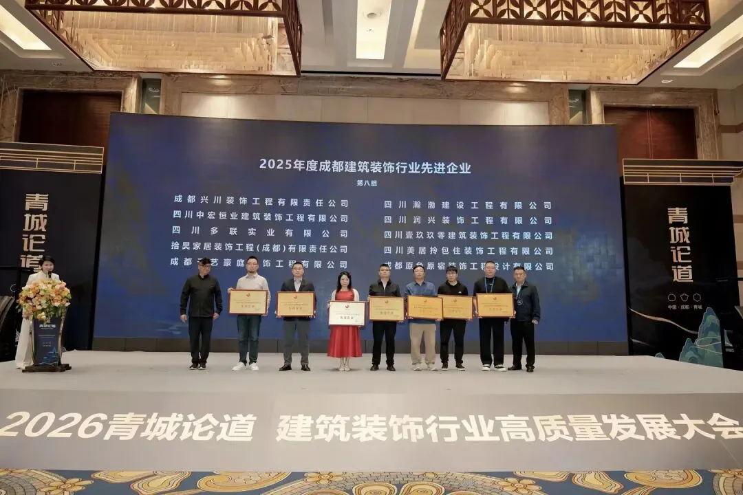近日,“好设计·好服务·好生活—建筑装饰行业高质量发展大会—2026青城论道”顺利召开。本次大会由成都市建筑装饰协会牵头,联合全国13个省市行业协会、权威专家及200余家头部企业举办,紧扣国家“十五五”规划部署,聚焦行业高质量发展,凝聚产业链力量破解发展痛点。