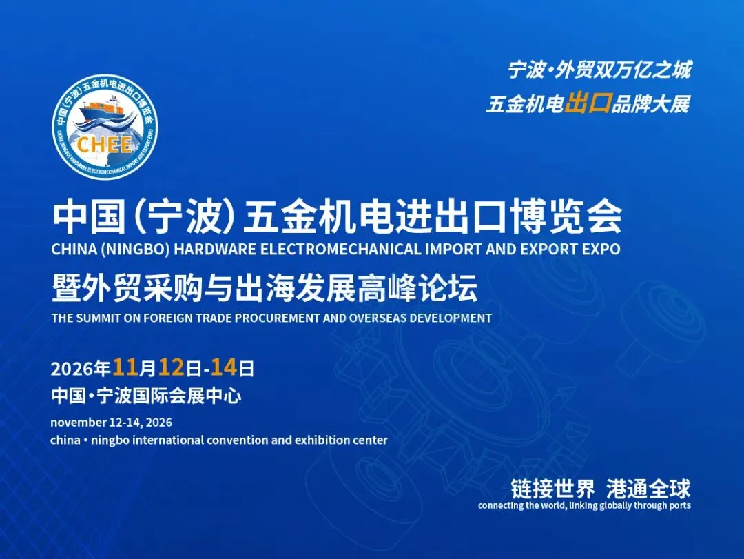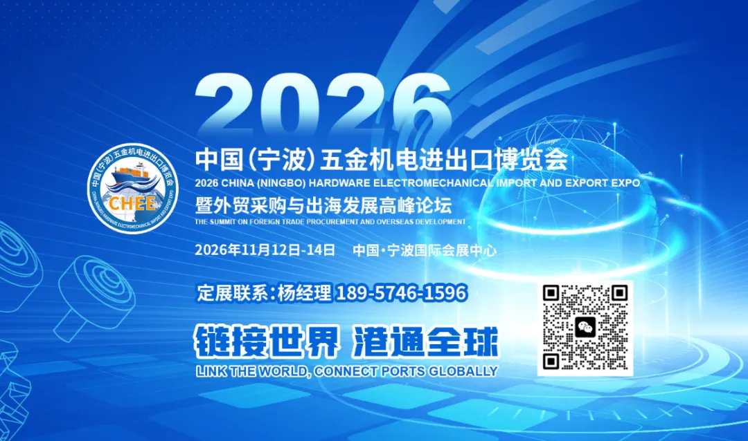 2026中国(宁波)五金机电进出口博览会2026 CHINA (NINGBO) HARDWARE ELECTROMECHANICAL IMPORT AND EXPORT EXPO暨外贸采购与出海发展高峰论坛THE SUMMIT ON FOREIGN TRADE PROCUREMENT AND OVERSEAS DEVELOPMENT2026年11月12日-14日中国•宁波国际会展中心订展联系电话:杨璐 18957461596国际五金机电高新技术产品展国际工业五金工具及紧固件展国际新型建筑五金展国际智能门锁与未来居家安全展国际机电产品及技术装备展国际泵阀及电机技术产品展支持单位:中国五金交电化工商业协会、中国家用电器商业协会、上海五金商业行业协会、浙江省五金工具行业协会、江苏省五金制品行业协会、长三角五金机电产业联盟、宁波市五金制品协会、金华市工具行业协会、宁波市轴承行业协会、余姚市五金制品协会、义乌市五金家电行业协会、丹阳市超硬材料工具商会、保定市轻型起重机械行业协会主办单位:中展兴业(北京)国际会展有限公司承办单位:宁波港通国际会展有限公司 随着全球经济一体化进程的加速和国际贸易的不断深化,五金机电产业作为全球制造业的重要支柱,正迎来前所未有的发展机遇。智能制造、绿色环保、自动化生产等技术的突破性进展,推动了五金机电行业的快速创新与升级。特别是在数字化转型的浪潮下,五金机电产品正在朝着智能化、定制化和高效化方向发展,产业结构正逐步向高端技术产品转型。 当前,国际市场对高质量五金机电产品的需求持续快速增长,越来越多的企业开始加速“出海”步伐,期望借助先进的技术与创新产品,开拓更广泛的国际市场,在全球供应链中占据更加重要的位置。 宁波作为中国重要的制造业基地和港口贸易中心,凭借完善的产业链生态、便捷的物流体系和强大的出口能力,已经成为全球五金机电产品的重要集散地,吸引了大量外贸企业在此聚集。宁波舟山港作为全球最大的货物吞吐港,连接着全球200多个国家和地区,为五金机电企业提供了便捷的贸易通道。统计数据显示,2024年宁波口岸进出口2.54万亿元,出口五金机电产品9891.1亿元,增长9.2%,占宁波口岸出口份额提升至52.9%,对口岸出口增长贡献率达62.2%,展现出强劲的增长态势。 在当前国际形势和经济发展的大背景下,五金机电企业亟需通过参与国际化展会,增强与全球供应商、采购商的对接与合作,提升国际市场竞争力。2026中国(宁波)五金机电进出口博览会,将为企业提供一个展示创新技术、拓展全球市场、深化合作关系的理想平台,助力企业在全球化竞争中立于不败之地。