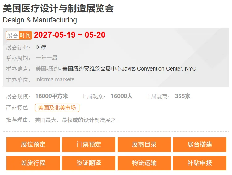 同期展会: 6 大主题展联动 包括 MedTech、Automation、Packaging、Design & Manufacturing、Plastics、Quality