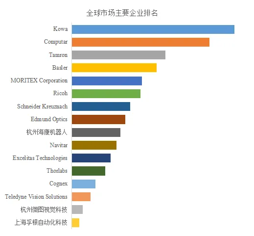 Basler、 Teledyne Vision Solutions、 Schneider Kreuznac、 Kowa、 Thorlabs、 Edmund Optics、 Excelitas Technologies、 Ricoh、 Computar、 Tamron、 Navitar、 Cognex、 杭州海康机器人、 杭州微图视觉科技、 茉丽特集团、 上海孚根自动化科技