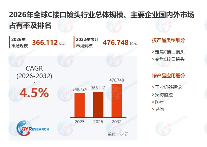 若您希望进一步了解该行业全面深度分析,可参考QYResearch最新发布的《2026年全球C接口镜头行业总体规模、主要企业国内外市场占有率及排名》研究报告。