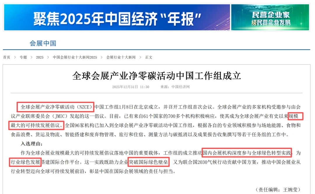 中国会展经济研究会会长曲维玺在2026中国会展经济研究会年会暨论坛上指出,2026年是会展业在深度转型中实现提质增效、迈向更高水平发展的关键之年。“绿色低碳与政策人才支撑是会展可持续发展的重要保障。顺应绿色发展潮流,推动展会流程、场馆运营、搭建材料全链条低碳化,已成为行业共识”——这一判断精准概括了绿色低碳在会展业发展格局中不断上升的战略地位。
