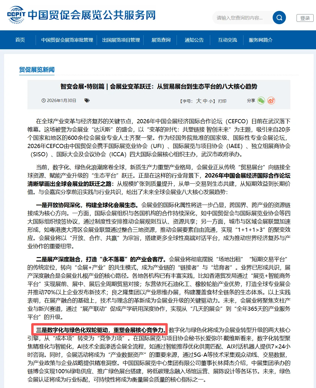 进入“十五五”时期,绿色低碳发展在中国会展业战略规划中的地位进一步上升。2026年中国会展经济国际合作论坛明确将数字化与绿色化定位为会展业转型升级的两大核心引擎,从“成本项”转变为“竞争力项”。
