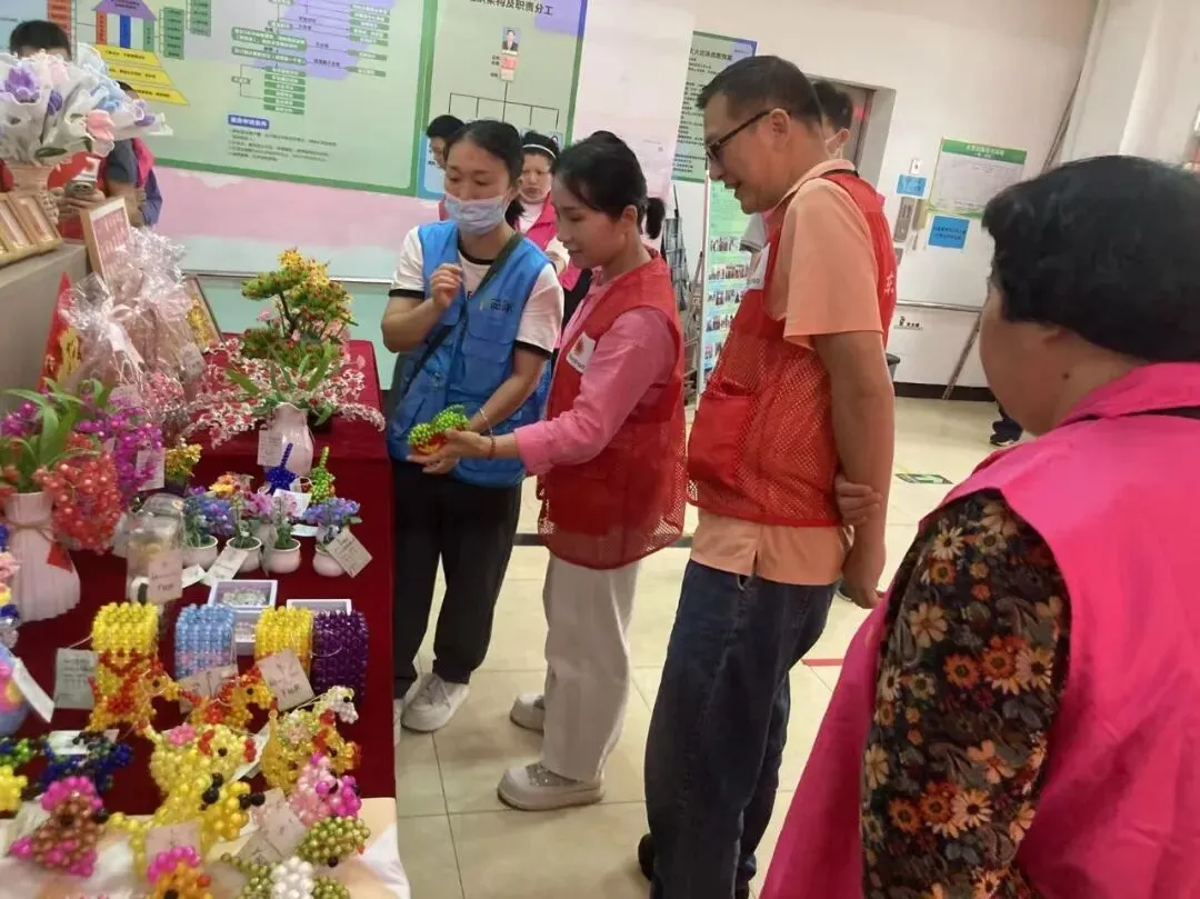 活动现场,康园中心展出了残疾学员精心制作的串珠饰品、手工编织品等百余件工艺品。企业员工驻足欣赏,认真聆听学员讲述制作背后的故事。不少员工主动选购心仪的作品,以“消费助残”的方式支持学员劳动成果。据统计,当日展销环节销售额达1千余元,所得款项将全部用于学员公益活动制作所得和技能培训。