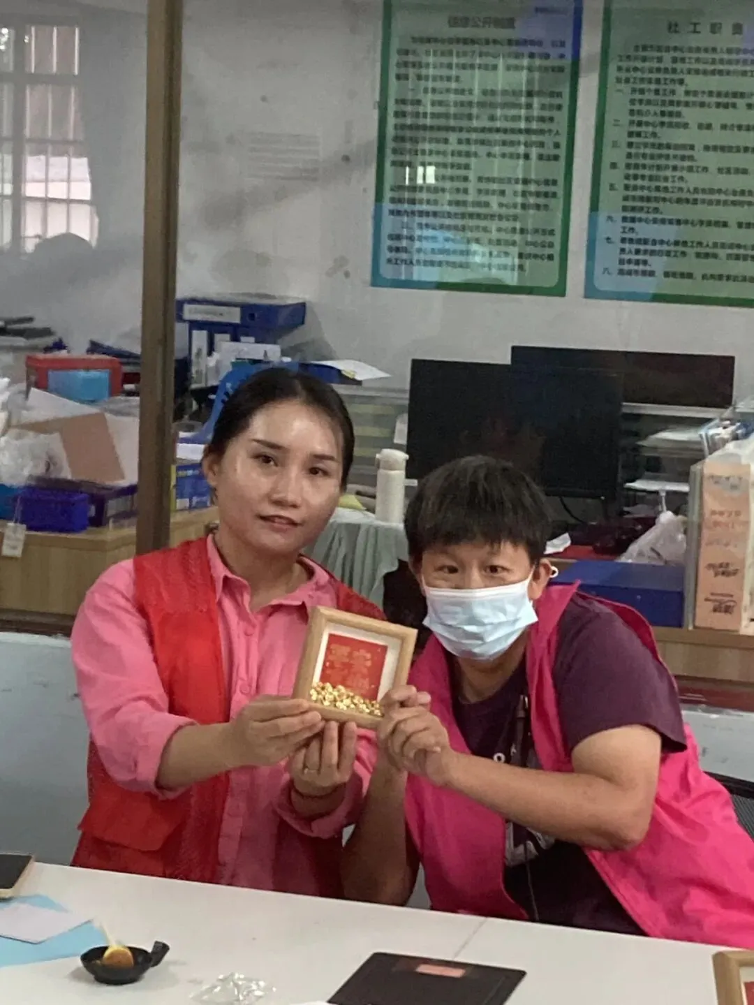 在手工制作和代加工环节,企业员工与残疾学员结对,共同完成简易工艺品和代加工产品任务。通过“一对一”协作,双方默契配合,残健双方在劳动中增进理解,在交流中建立友谊。