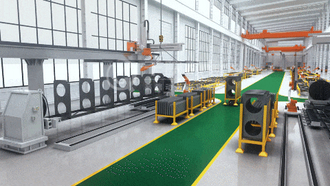 如何直观展现万吨级重型钢结构的自动化生产逻辑?本案例展示了我们为大型重工行业定制的柔性自动化生产线3D动画。