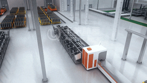 通过高精度三维建模与物理仿真渲染,全景还原了从原材料切割、机器人自动焊接、智慧物流到成品仓储的全流程。