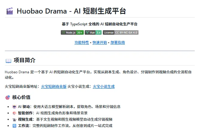 我打开 Huobao Drama 项目页的时候,第一眼不是功能列表。