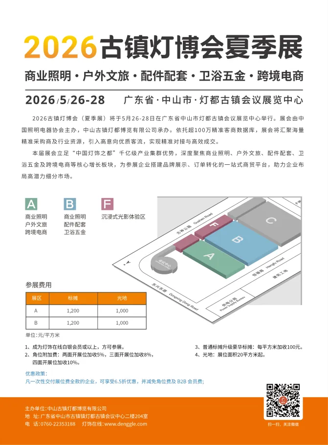 2026古镇灯博会夏季展商贸配对会,直连高意向采购商,面对面深度洽谈。即刻扫码报名,抢先锁定专属洽谈席位!