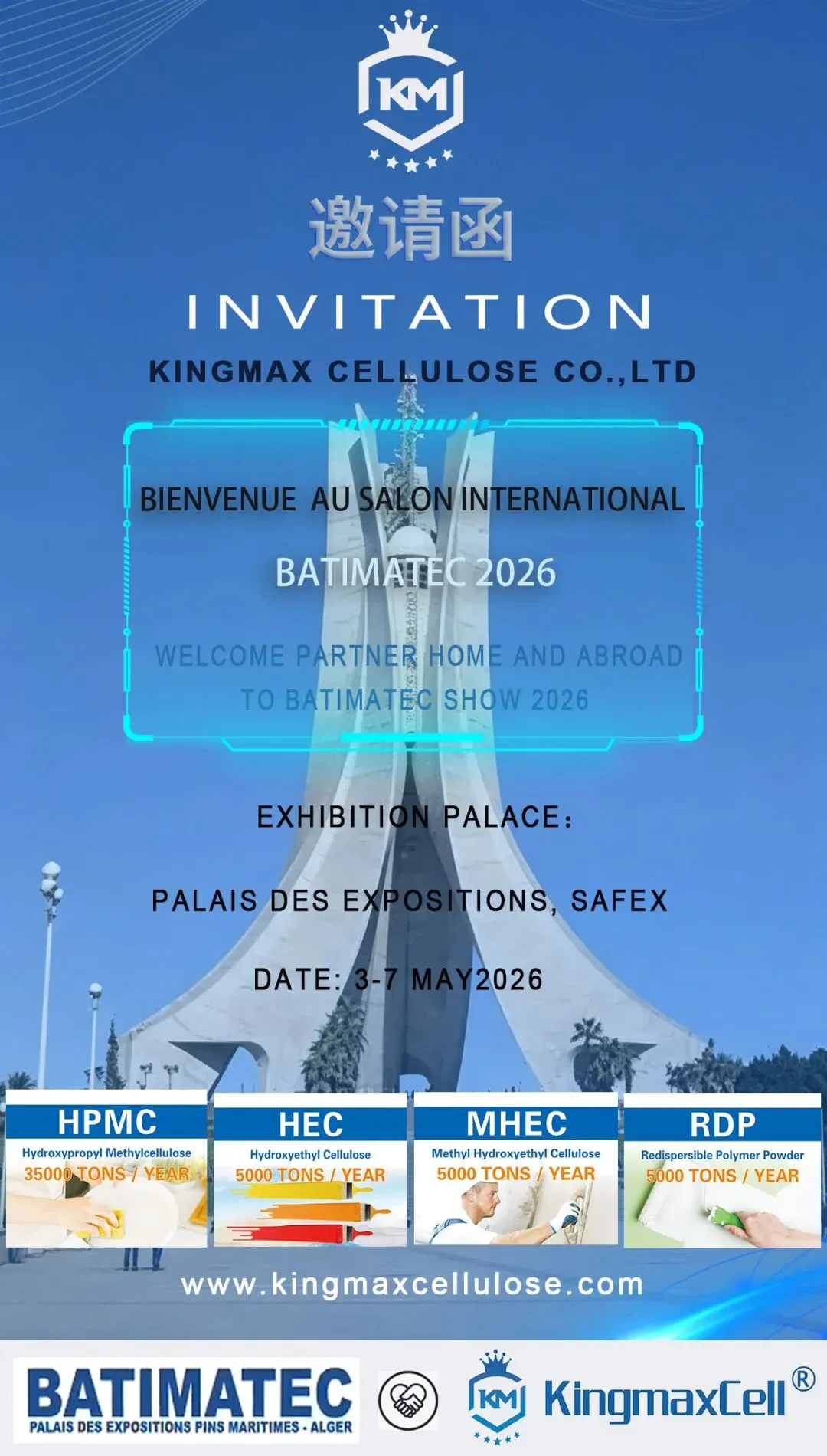 当北非市场的活力持续迸发,当行业盛会的号角悄然吹响,KINGMAX CELLULOSE 凯茂星携满满诚意与核心实力,正式向全球行业同仁、合作伙伴发出诚挚邀请——共赴阿尔及利亚国际建材工业展览会,以产品为媒,以合作搭桥,共探北非建材市场新蓝海,共绘行业发展新蓝图!