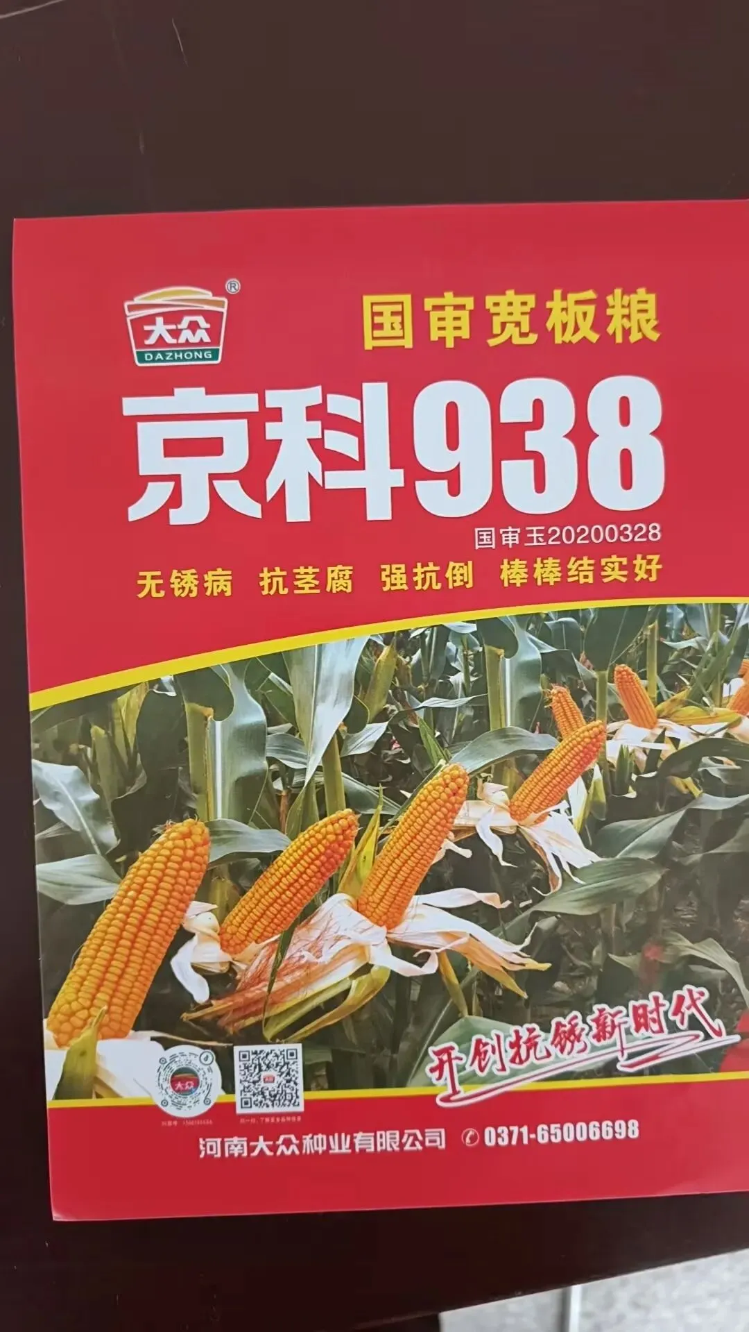 京科938由河南大众种业有限公司选育,国家审定编号国审玉20200328,属国审宽板粮玉米品种,具体信息如下: