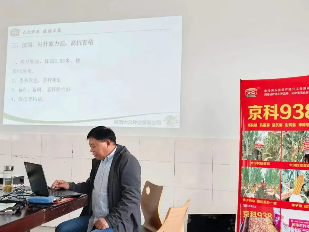 为积极响应国家粮食安全战略,切实提升固镇县玉米单产水平,我社于近日举办京科938玉米新品种推介会,特邀河南大众种业有限公司专家余总莅临指导,围绕优质高产玉米品种筛选与推广工作进行深入讲解。