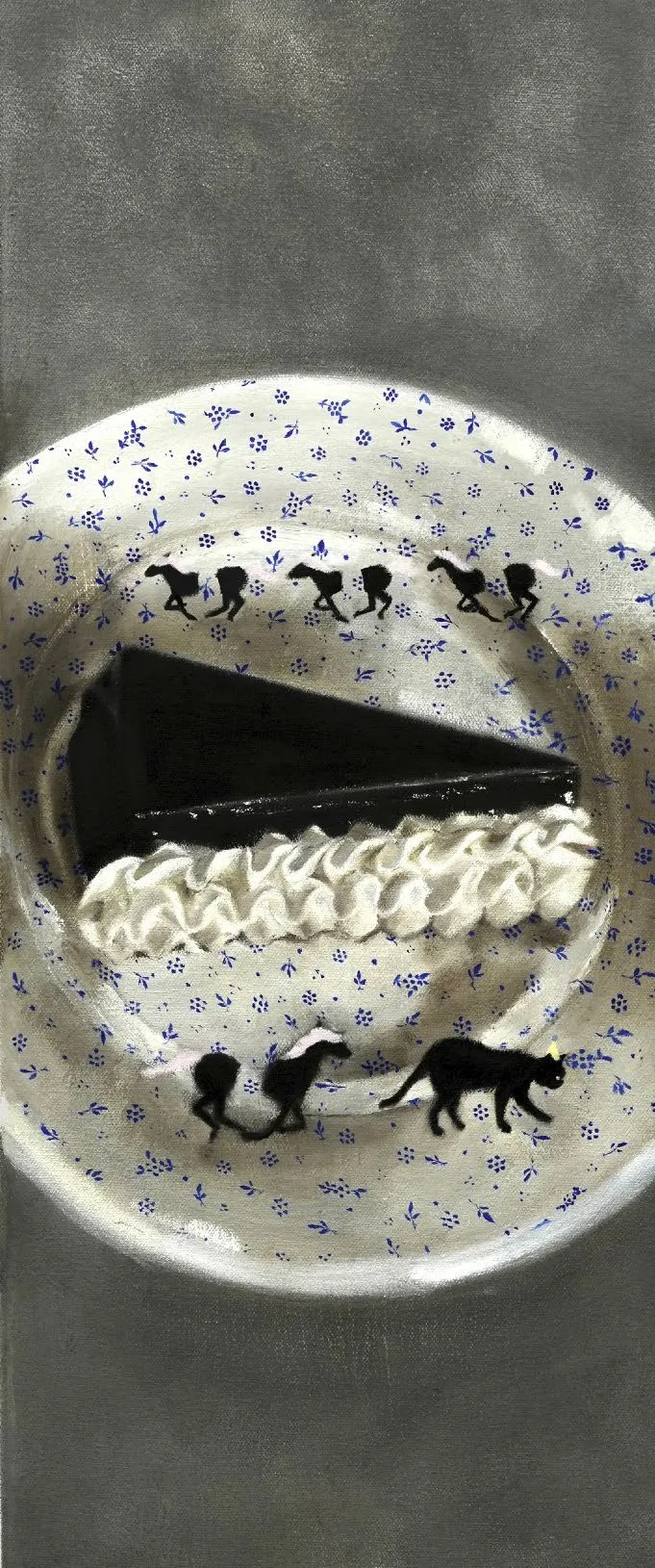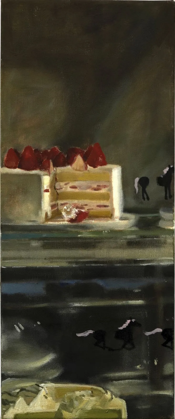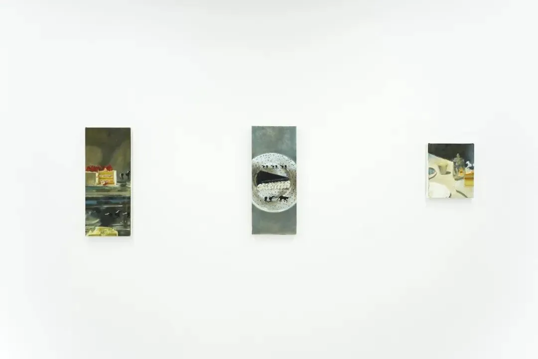 人在年少时离家的情绪总是复杂的,这似乎是成长过程中为了适应之后社会环境中的必然的经历。就像成年的飞燕,必须离开巢穴,虽然残酷但是只有独自学会适应野外环境,才能活下去。艺术家作品中出现的蛋糕、虚掩着的匣子和柜子,仿若还留有这象征着家的温暖痕迹。当关上盖子和门时,这样的回忆便会封存变为她自己的“飞燕草岁月匣”与她一同远行。(节选)