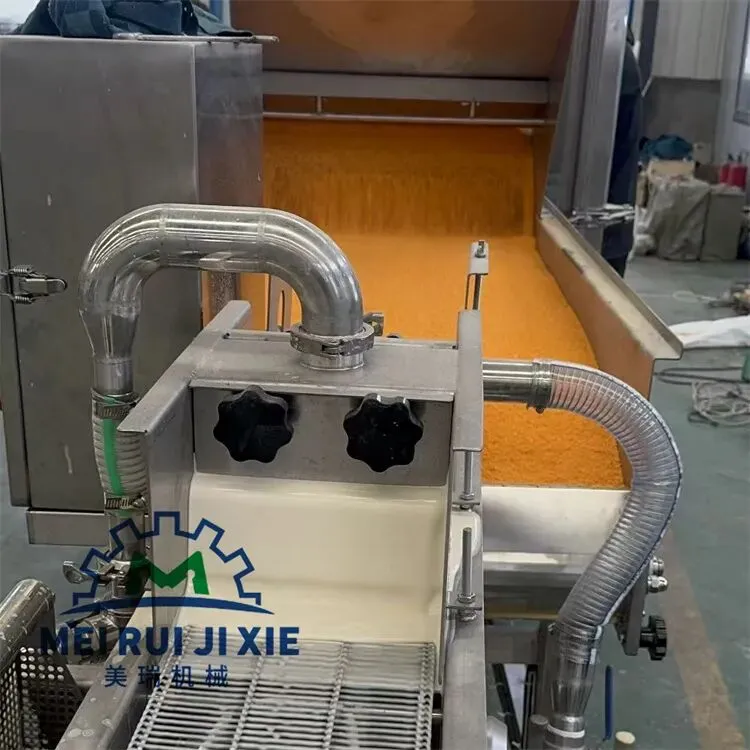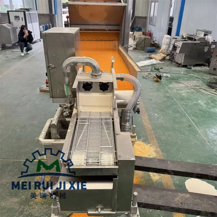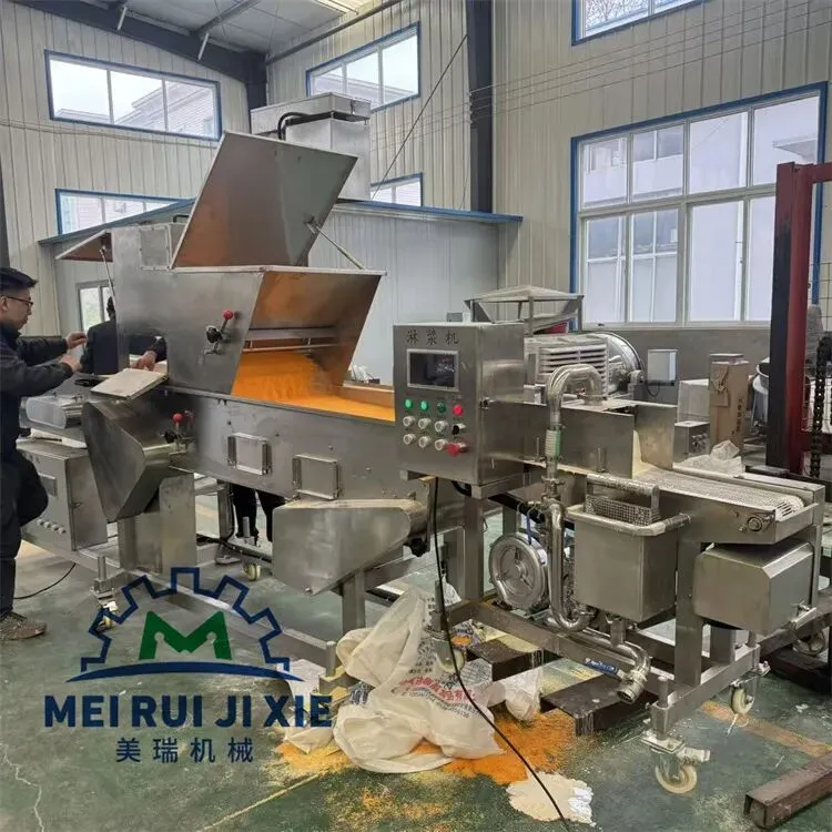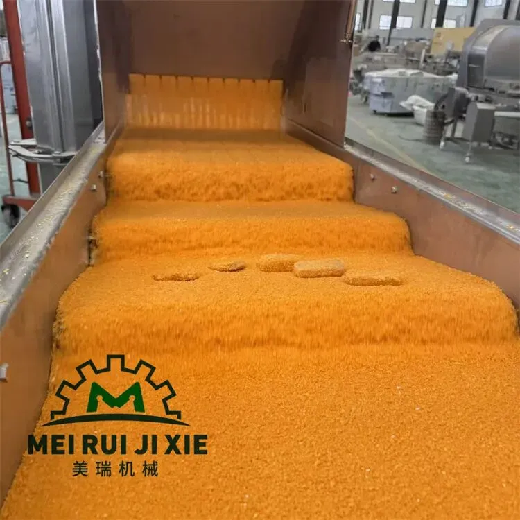 油炸芝士棒上浆裹糠生产线 炸牛奶油炸冰淇淋上糠机 芝士热狗棒淋浆机 脆皮酸奶上浆裹糠油炸生产线,油炸调理品加工炸酸奶,炸冰淇淋,炸芝士棒等等,一般采用浸浆机也就是浓浆机,时间产品完全的浸泡在浆液当中,后面会有风刀将多余的浆液吹掉,裹糠机采用上糠机上面撒糠下面粘糠效果非常的好。