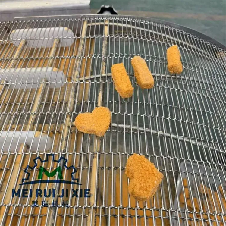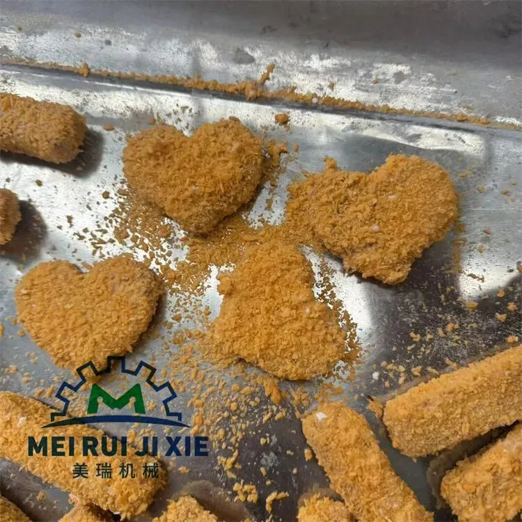 食品裹糠机,上糠机是通过料斗里泄出的面包屑和床身中的面包屑将面包屑均匀涂裹在鸡肉、牛肉、猪肉、鱼虾等海鲜产品上。杰出的循环系统,极大的减少了面包屑的破损;不仅适用于碎屑,而且还适用于粗屑;具有可靠的安全防护装置,采用SIEMENS电器件安全可靠;可以和成型机、上浆机、油炸机等对接使用,从而实现连续生产;整机采用不锈钢制造,设计新颖、结构合理、性能可靠。