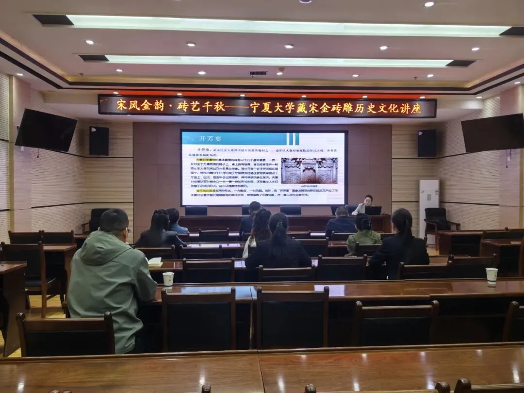 开幕仪式结束后,宁夏大学民族与历史学院史牧遥博士受邀开展专题讲座。讲座以本次特展为依托,聚焦开芳宴、启门图等核心题材,结合考古实证与文献史料,深度解析宋金砖雕背后的历史文脉、民俗风情与文化内涵。