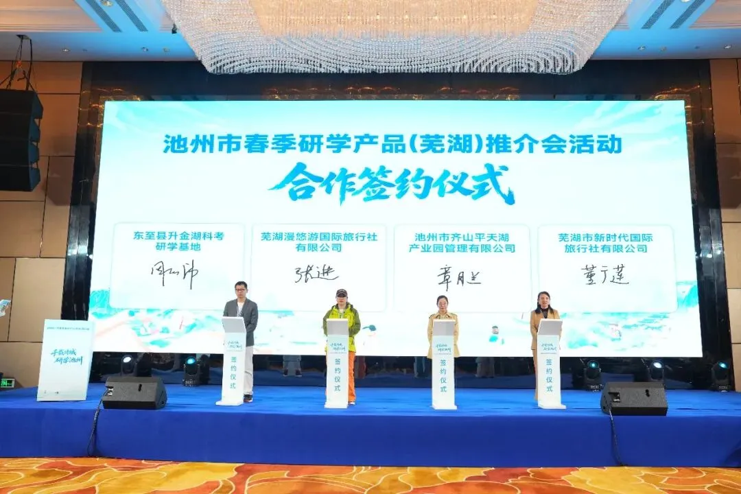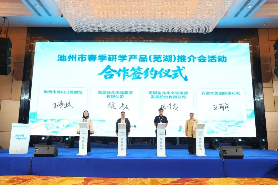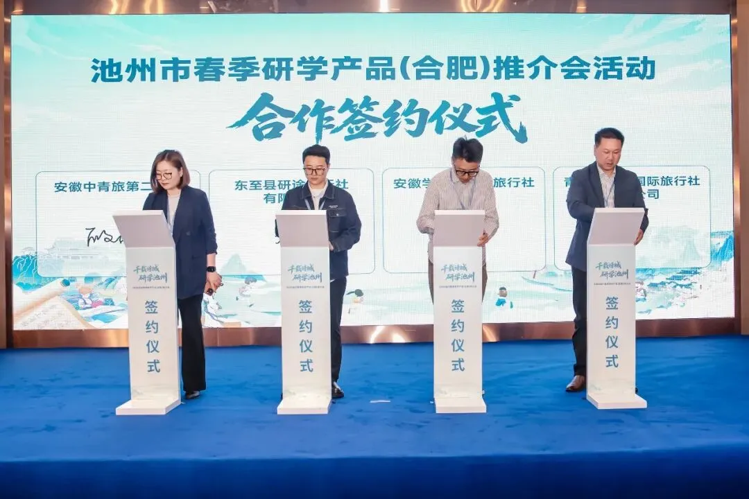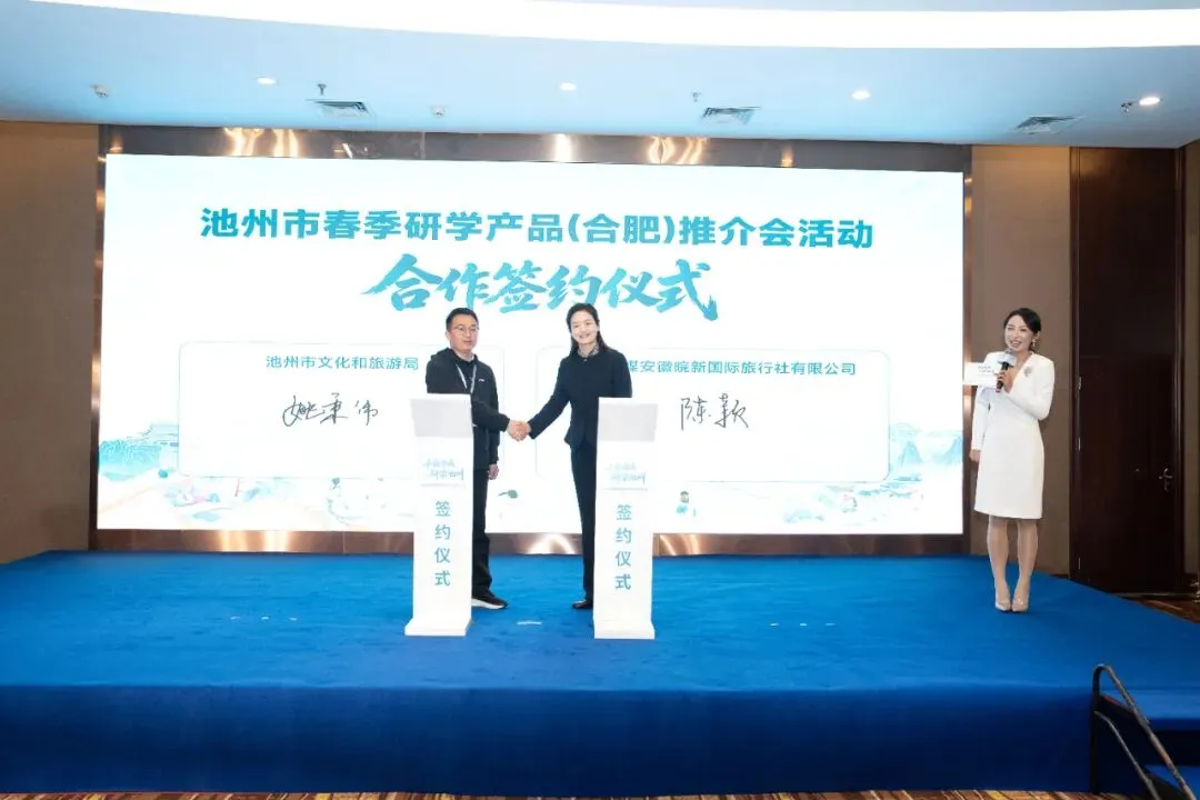 活动现场,池州市文旅局与皖新研学签订战略合作协议。皖新研学将以本次战略合作为契机,持续发挥课程研发、渠道整合、运营服务等核心优势,深化与池州文旅部门及研学基地的联动合作,联合打磨高品质、特色化、标杆性研学产品。持续丰富池州研学业态、完善研学服务体系、强化品牌影响力,让更多青少年走进池州、读懂池州、爱上池州,让 “研学池州” 成为长三角研学旅游的亮眼名片。