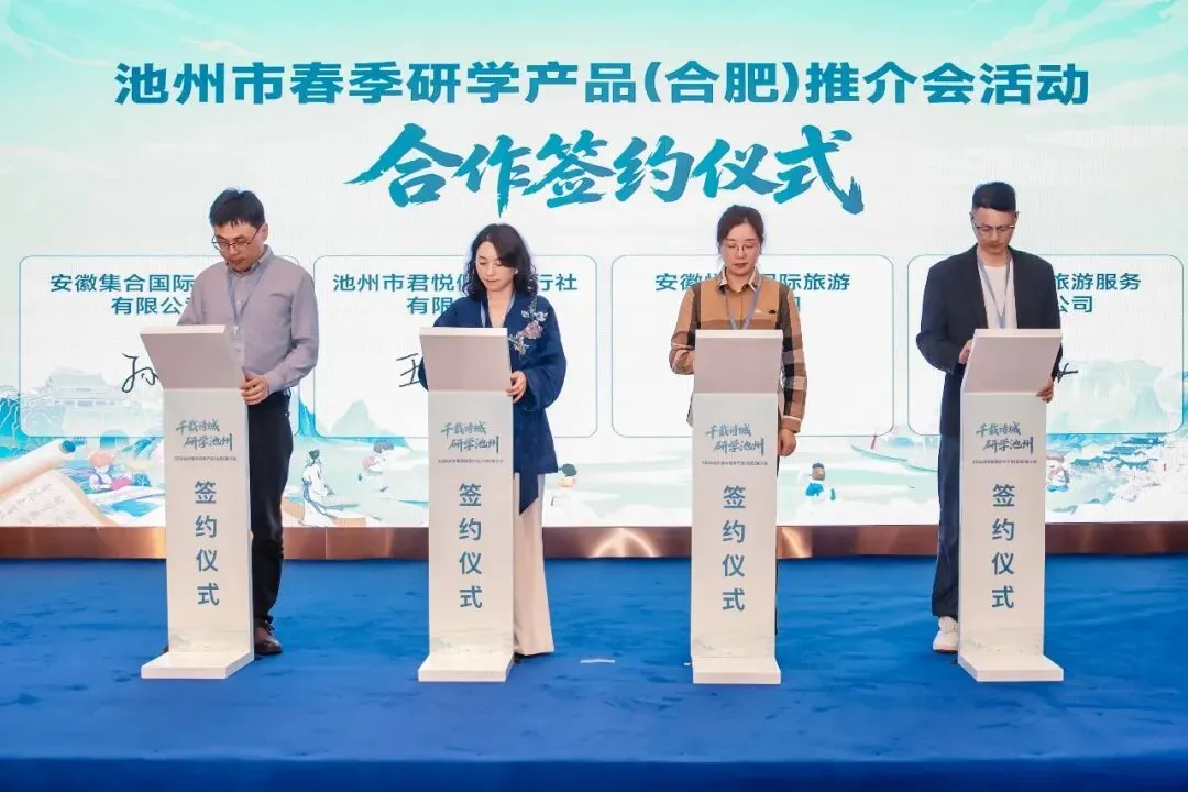 本次活动池州市文旅重磅发布地质科考、历史寻踪、非遗传承、红色教育等十大主题研学线路,将亿年地质、千年文脉、江南山水、非遗技艺转化为可体验、可探究、可成长的“行走课堂”。活动同步发布研学优惠政策。池州各研学基地、景区代表现场推介特色课程与专业服务,充分展现池州研学产品的丰富性与专业性,为合肥与芜湖研学市场提供多元化、高品质的合作选择。