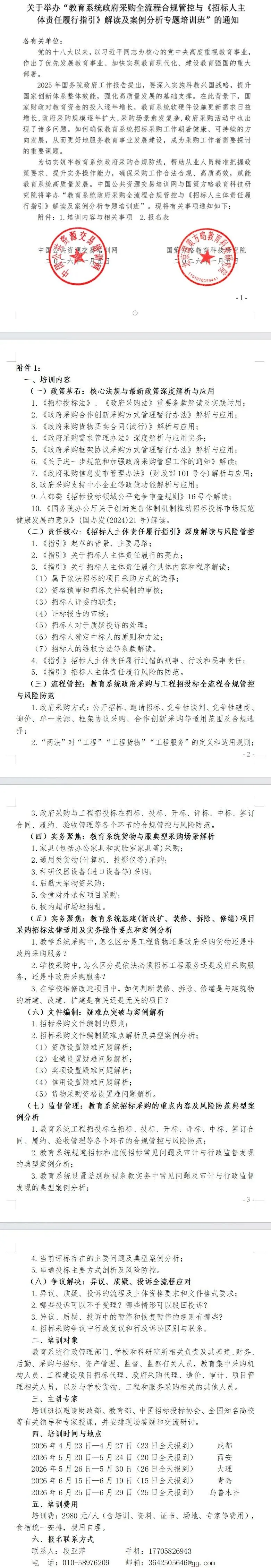 “教育系统政府采购全流程合规管控与《招标人主体责任履行指引》解读及案例分析专题培训班”