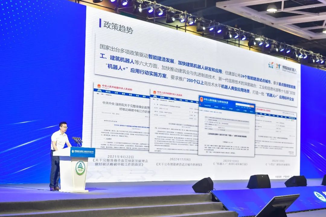 本次国际绿建大会,来自全国部分省、区(市)住建厅、自然资源厅、发改委等负责绿色建筑与建筑节能工作的有关负责人和全国各地的绿色建筑领域专家学者、先进企业代表等,共计数千人参加大会。博智林机器人受邀作专题汇报,向行业专家汇报当前博智林在智能建造上的发展成果与情况。