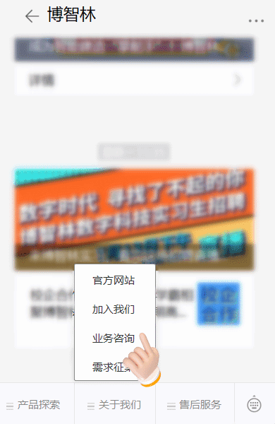 2.点击底部菜单-关于我们-业务咨询