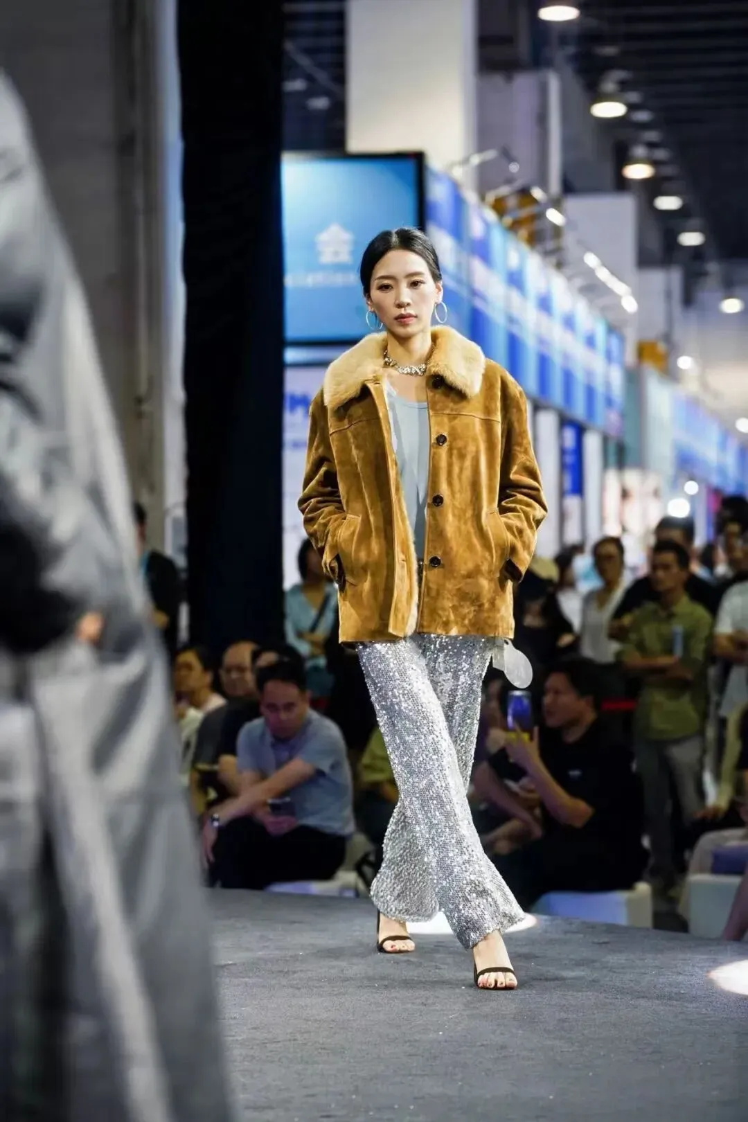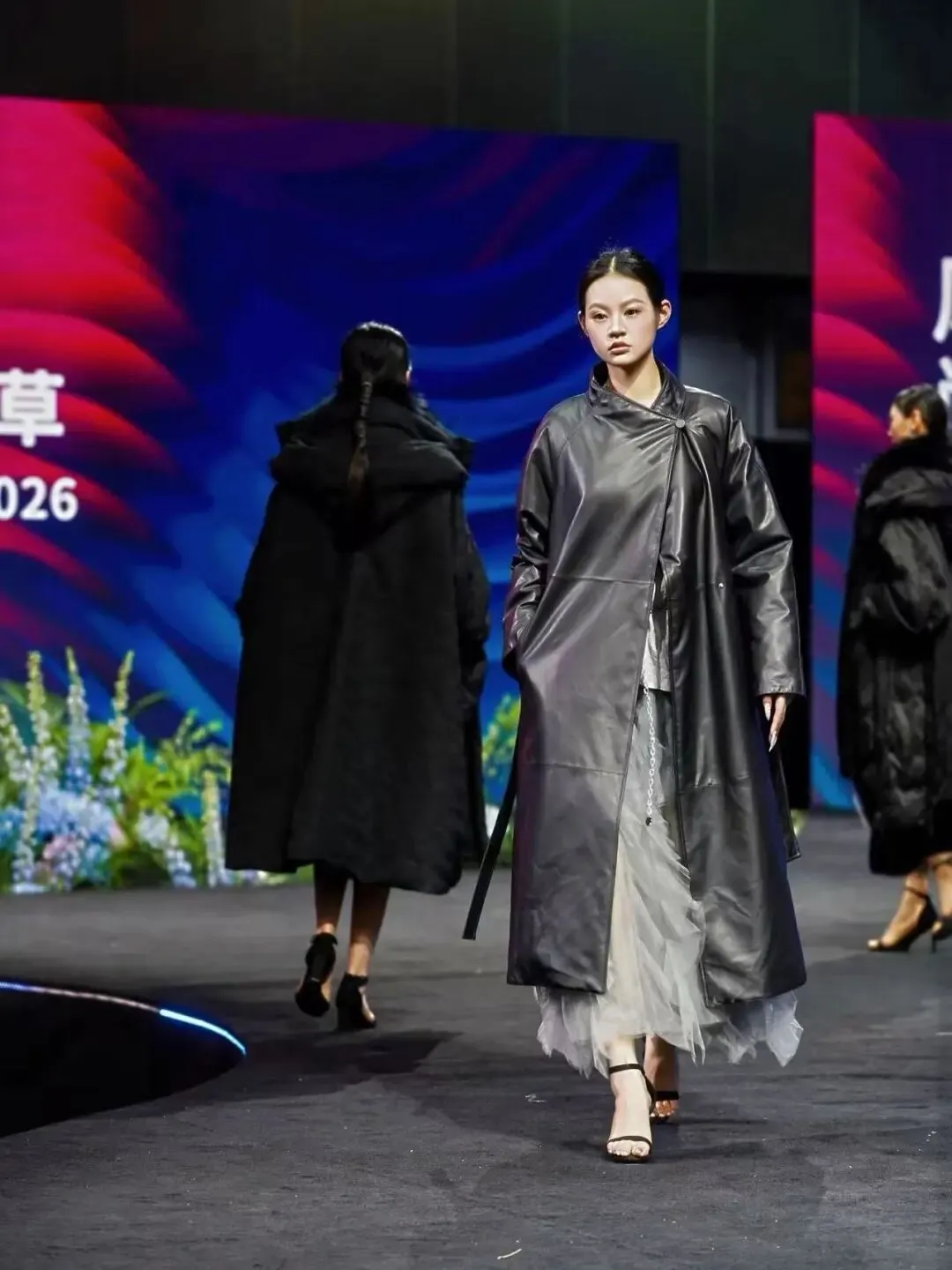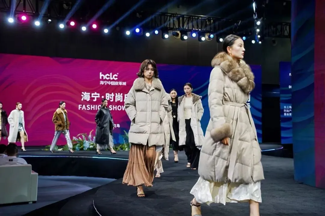 本次展会最大亮点当属“嘉兴产业带品牌走秀”,潮来公司自营品牌Clophilos 联袂华雁COTE NORD、9ee9、阿弟娜ADENA四大品牌,作为海宁中国皮革时尚产业的代表力量,在义乌国际博览中心为全球来宾呈现了“匠心海宁・时尚出海”时装秀。