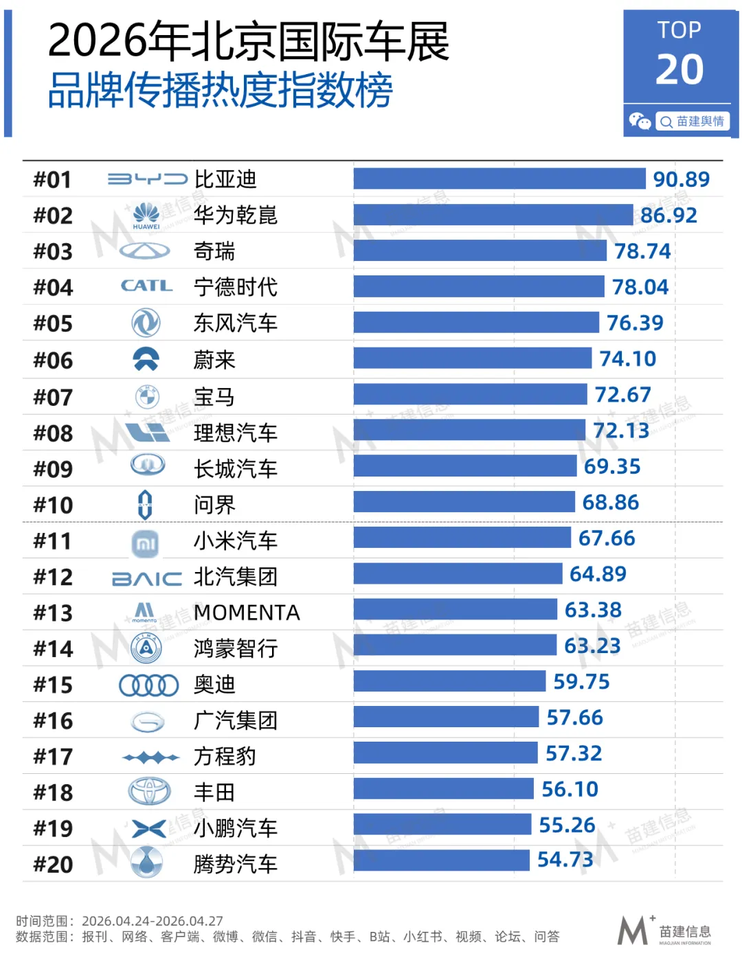 TOP20品牌榜:比亚迪登顶,生态与供应链品牌强势崛起