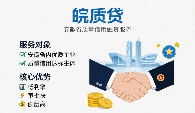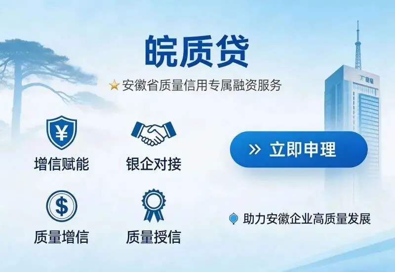 “皖质贷”是针对获得质量荣誉、参与制定先进标准、取得高端质量认证等在质量管理、质量基础、质量创新、质量品牌等方面具有较高资信等级的企业特别是中小微企业提供的一种银行信贷产品,由省市场监管局、省委金融办、省发展改革委、人民银行安徽省分行、安徽金融监管局指导在皖各银行机构推出。