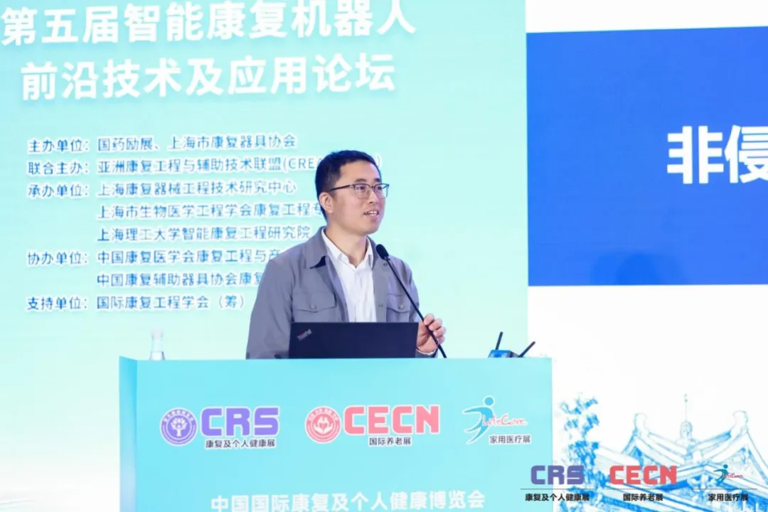 本论坛涵盖了“前沿技术进展”、“前沿技术临床应用”以及“产业圆桌论坛:脑机接口技术与康复机器人产业”三个主要议题。“前沿技术进展”主题由中国康复医学会康复工程与产业促进专委会秘书长张宇玲教授主持。上海理工大学智能康复工程研究院院长喻洪流教授做了“脑机接口赋能康复机器人:机遇与挑战”的报告,新加坡南洋理工大学Wei Tech ANG 教授做了“人工智能在临床运动康复评估中的应用”的主题报告,天津大学医学工程与转化医学研究院研究员王仲朋分享了其团队在“非侵入脑机接口的运功认知功能评估与调控”方面的技术进展。三位教授围绕各自目前的研究领域对未来智能康复机器人和脑机接口的发展趋势和方向提出了深刻的见解,内容引人入胜,发人深思。