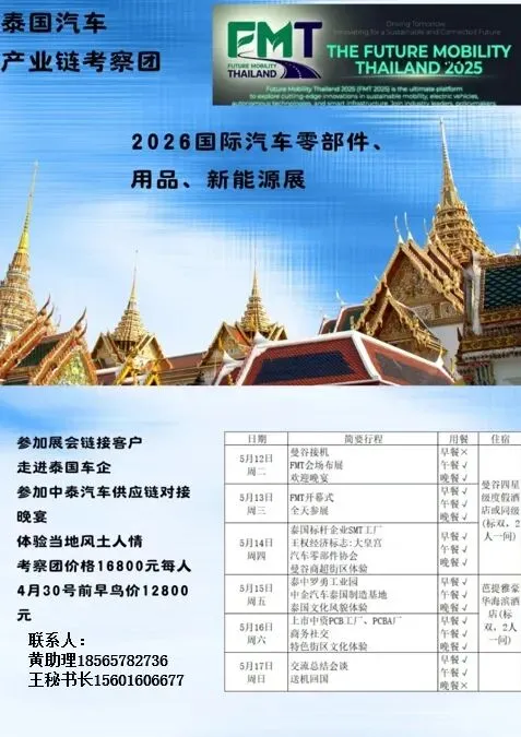 深圳市微波通信技术应用行业协会国际交流与合作专委会负责人全丹总邀请您参加2026泰国汽车零部件、用品、新能源展。