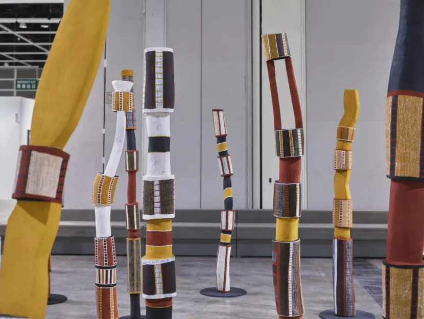 Pedro Wonaeamirri,《kurrujupuni, arrikininga, yarringa, tunuwuni kapi katukuni》,2025年巴塞尔艺术展香港展会「艺聚空间」展区现场(图源:Art Basel 官网)